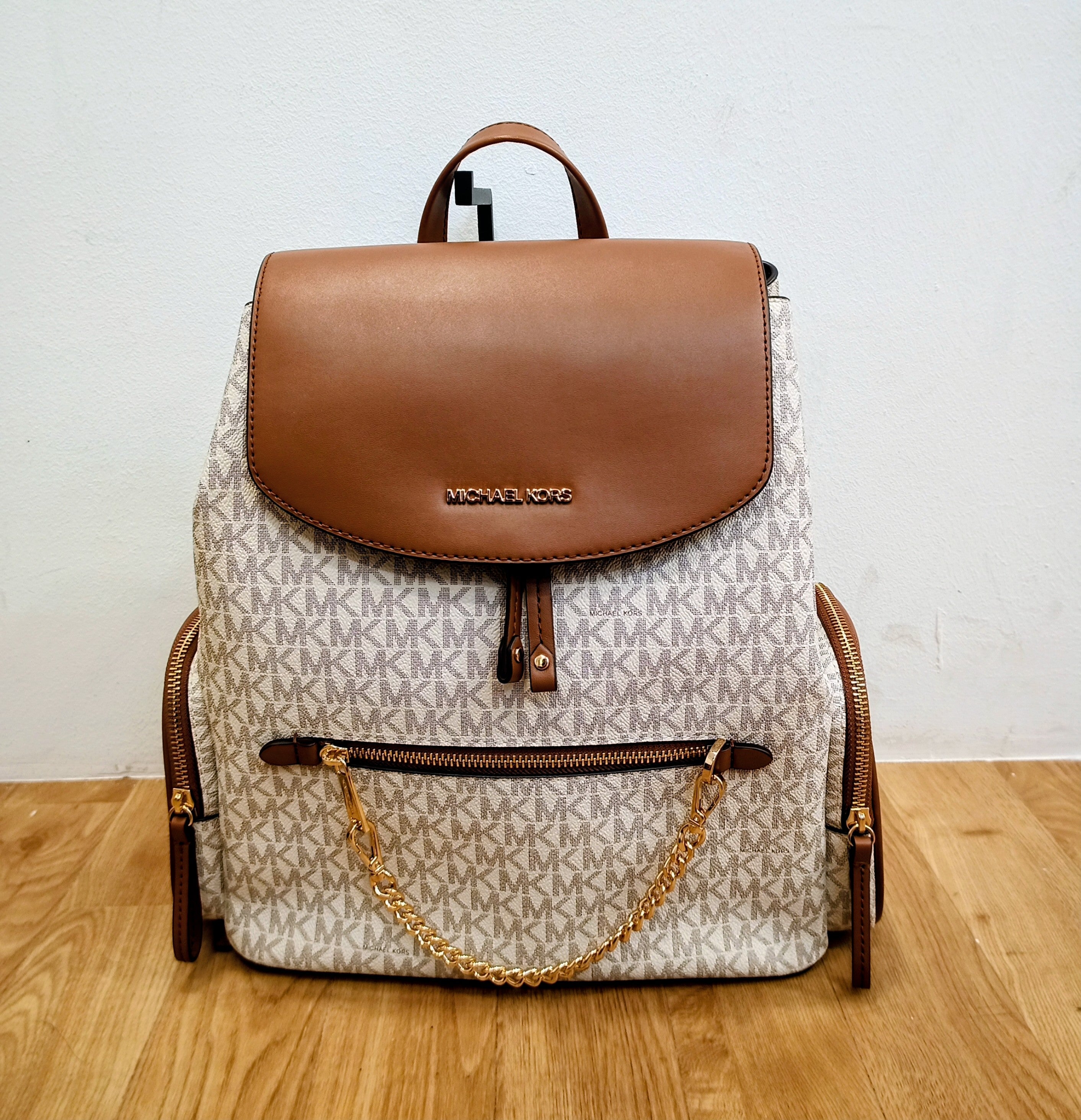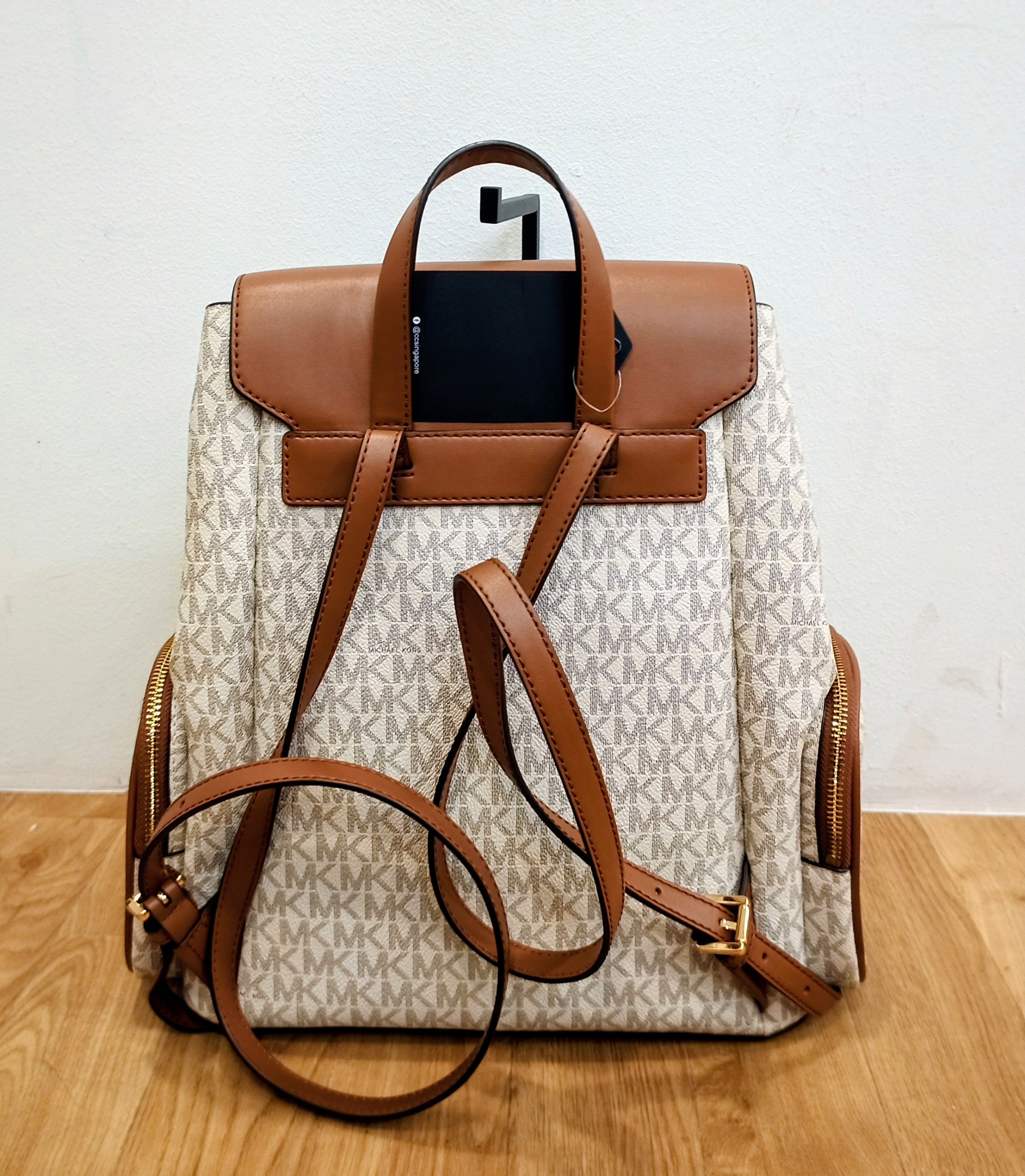 BACKPACK-WHITE/BROWN LEATHER/SIG LOGO PATTERN MICHAEL KORS