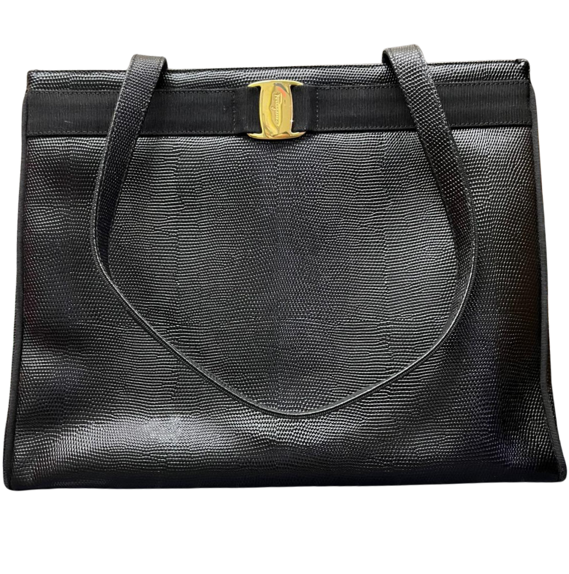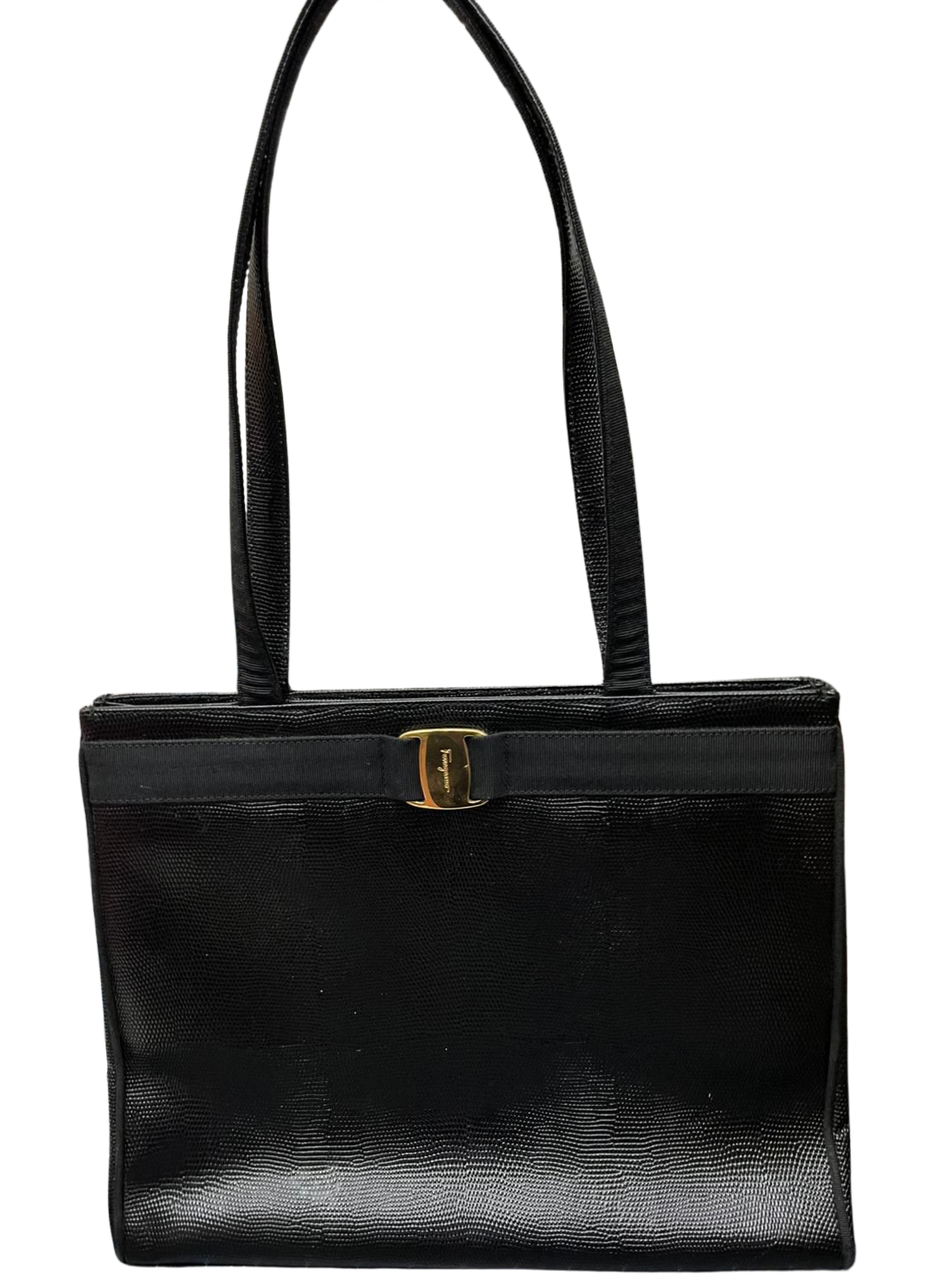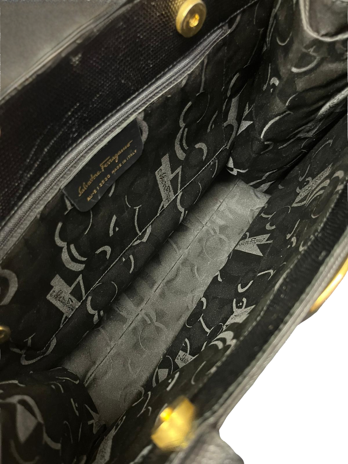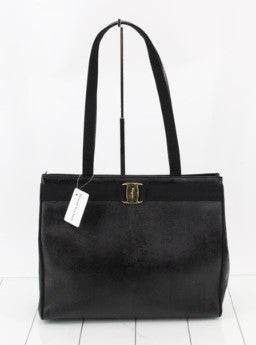 Salvatore Ferragamo Vara Bow Top Handle Tote Bag Black Leather.