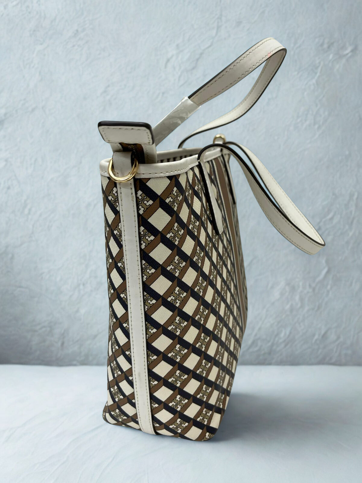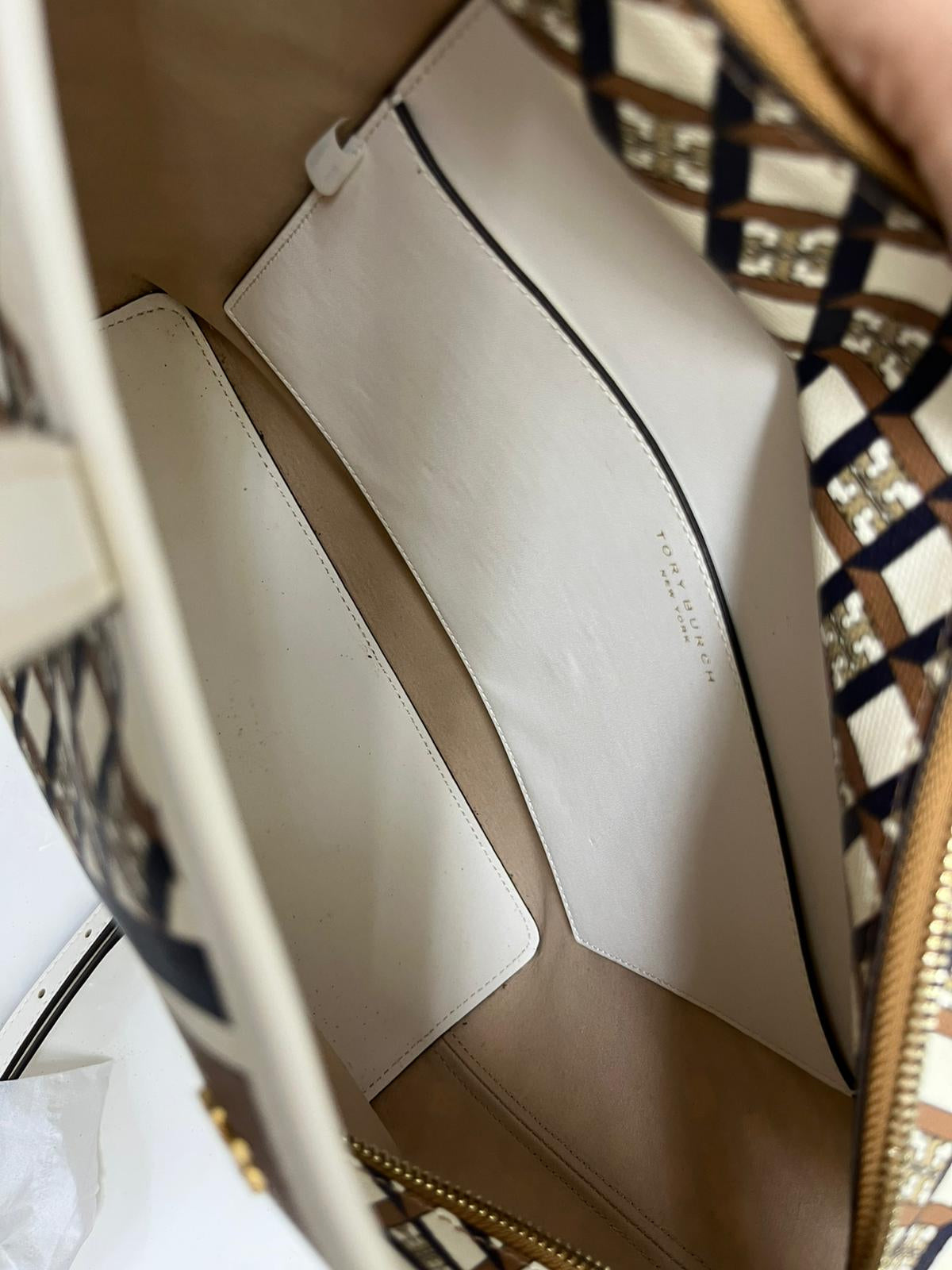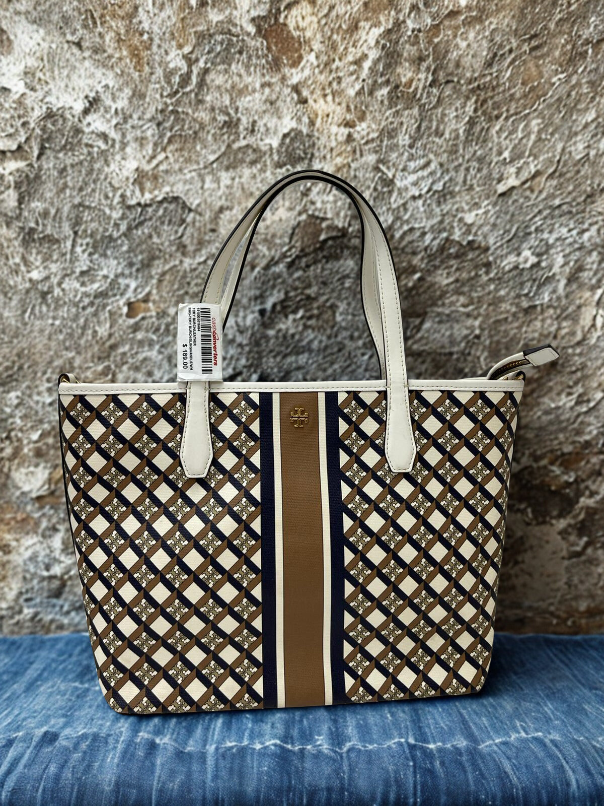 Tory Burch Womens Geo Logo Zip Tote Leather Brown Bag