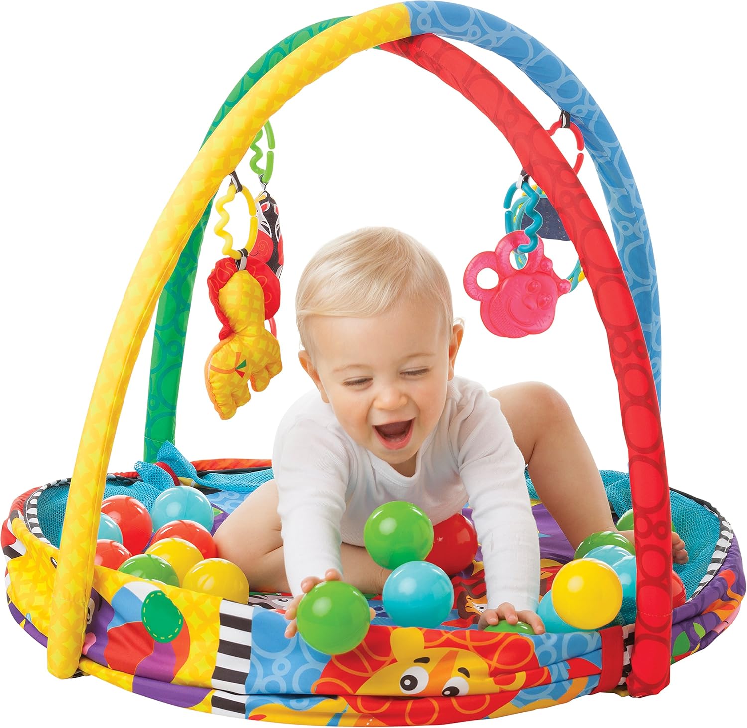 • Patterns, colours and fun characters engage baby and stimulate visual perception