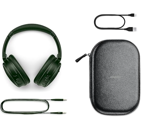 • Bose QuietComfort Wireless Noise Cancelling Headphones, Bluetooth Over Ear Headphones with Up To 24 Hours of Battery Life, Black/White/Cypress Green