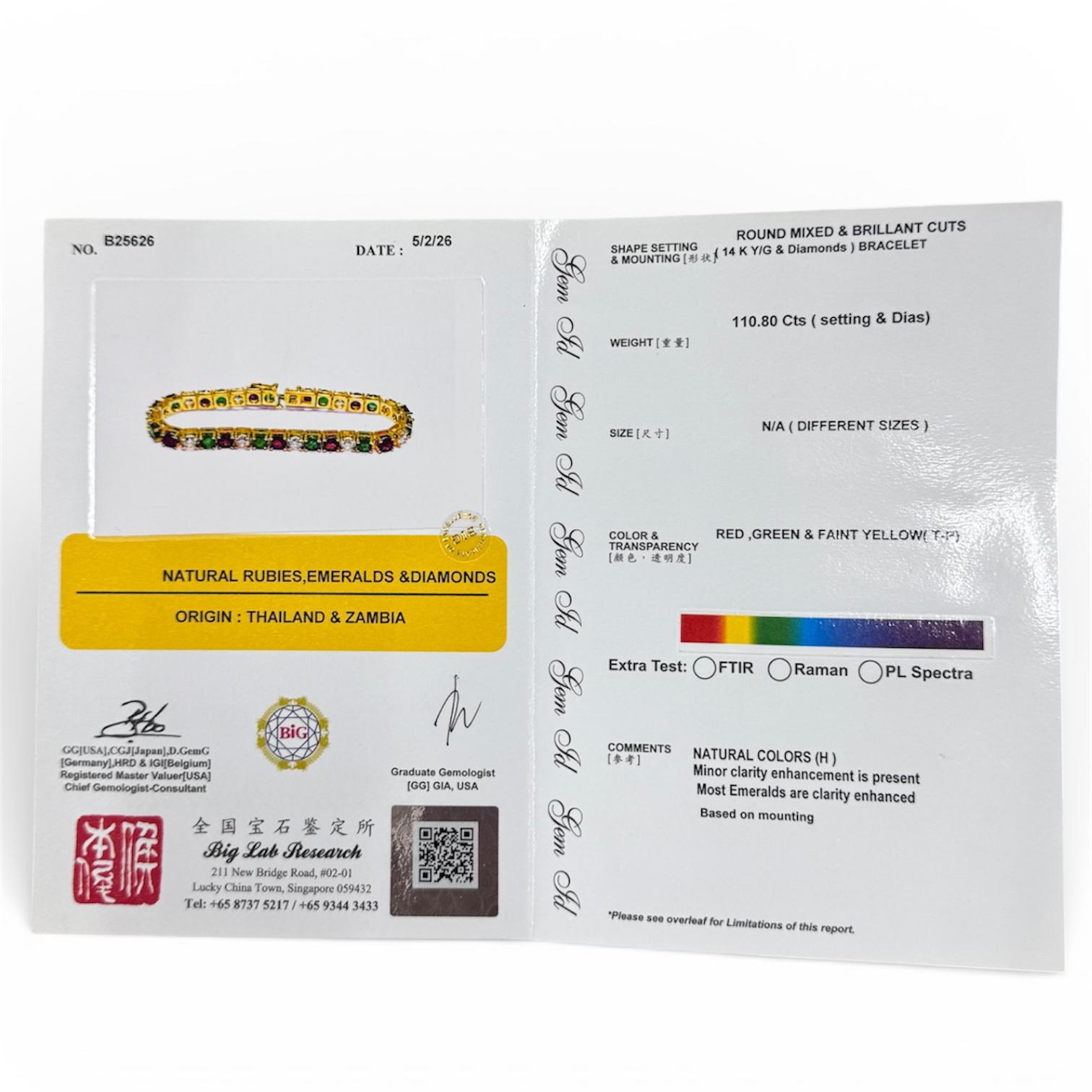 14KYG Precious Stone (Ruby, Emerald) Diamond Bracelet w/Cert