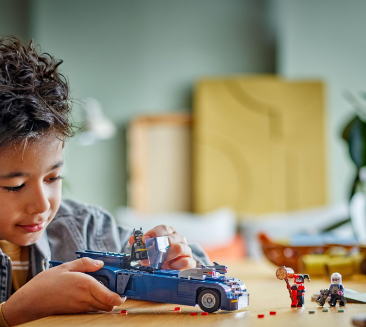 • BATMAN: The Animated Series Inspired Figures: This Batman universe children's toy includes a toy Batmobile with LEGO minifigures of Batman, Harley Quinn and Mr. Freeze