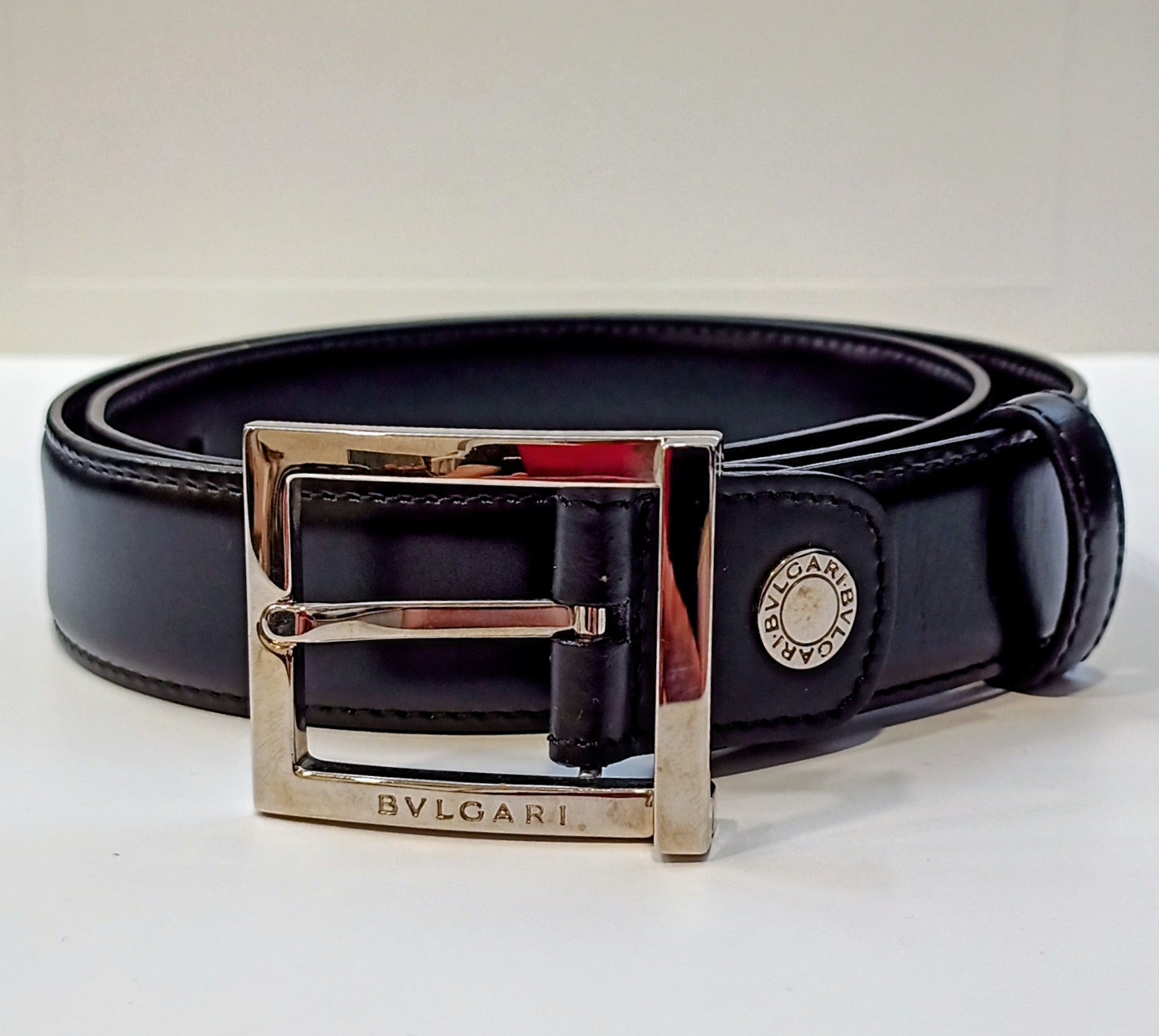 BVLGARI Black Leather Mens Belt w/ Box