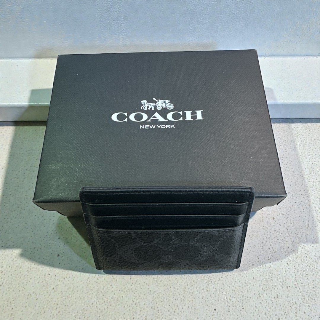 Compact and refined, this Coach leather card holder combines practical functionality with timeless design. Measuring 10cm in height and 7cm in length, it's perfectly sized for everyday carry, fitting seamlessly into pockets or bags. Crafted from genuine leather in classic black, this accessory showcases Coach's commitment to quality materials and expert craftsmanship. The slim profile makes it ideal for organizing cards while maintaining a sleek silhouette. A sophisticated choice for those who appreciate understated luxury and reliable construction.