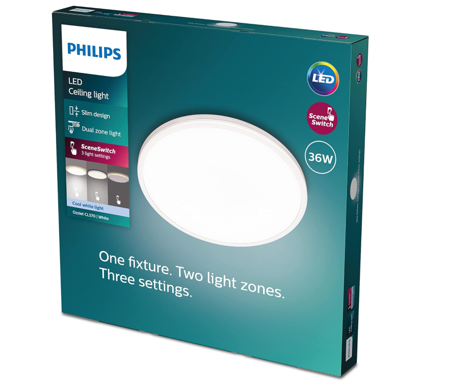 Philips LED Superslim Linear Ceiling Light 36W 4000K [Cool White - White] for Home Indoor Ceiling Lighting, Livingroom, Bedroom
