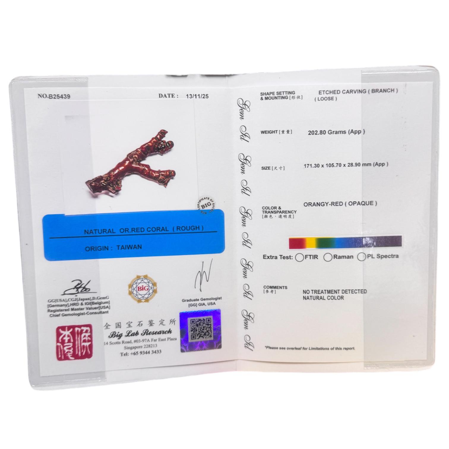 Authentic Taiwan red coral in its natural state, certified and untreated. Each piece retains its original character, free from any chemical enhancement or processing. A genuine investment for those seeking premium coral with documented authenticity and provenance.