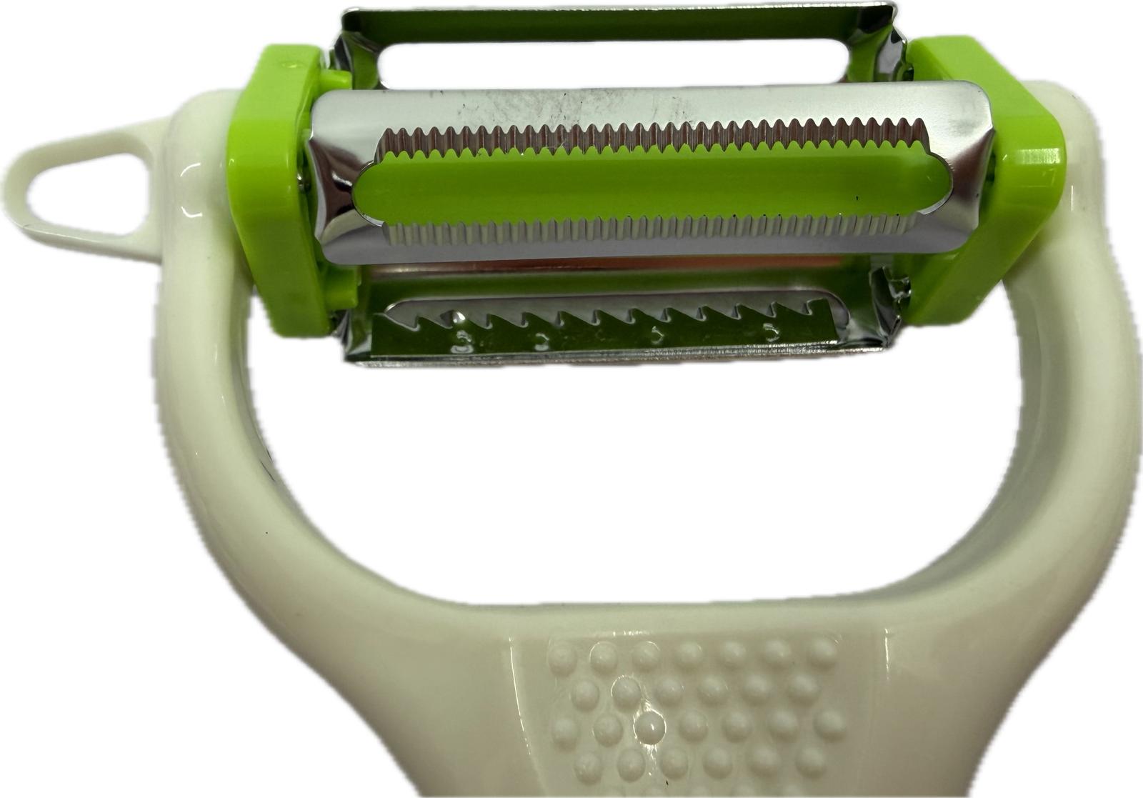 3-in-1 Functionality – Combines a peeler with three interchangeable graters for versatile fruit and vegetable preparation.