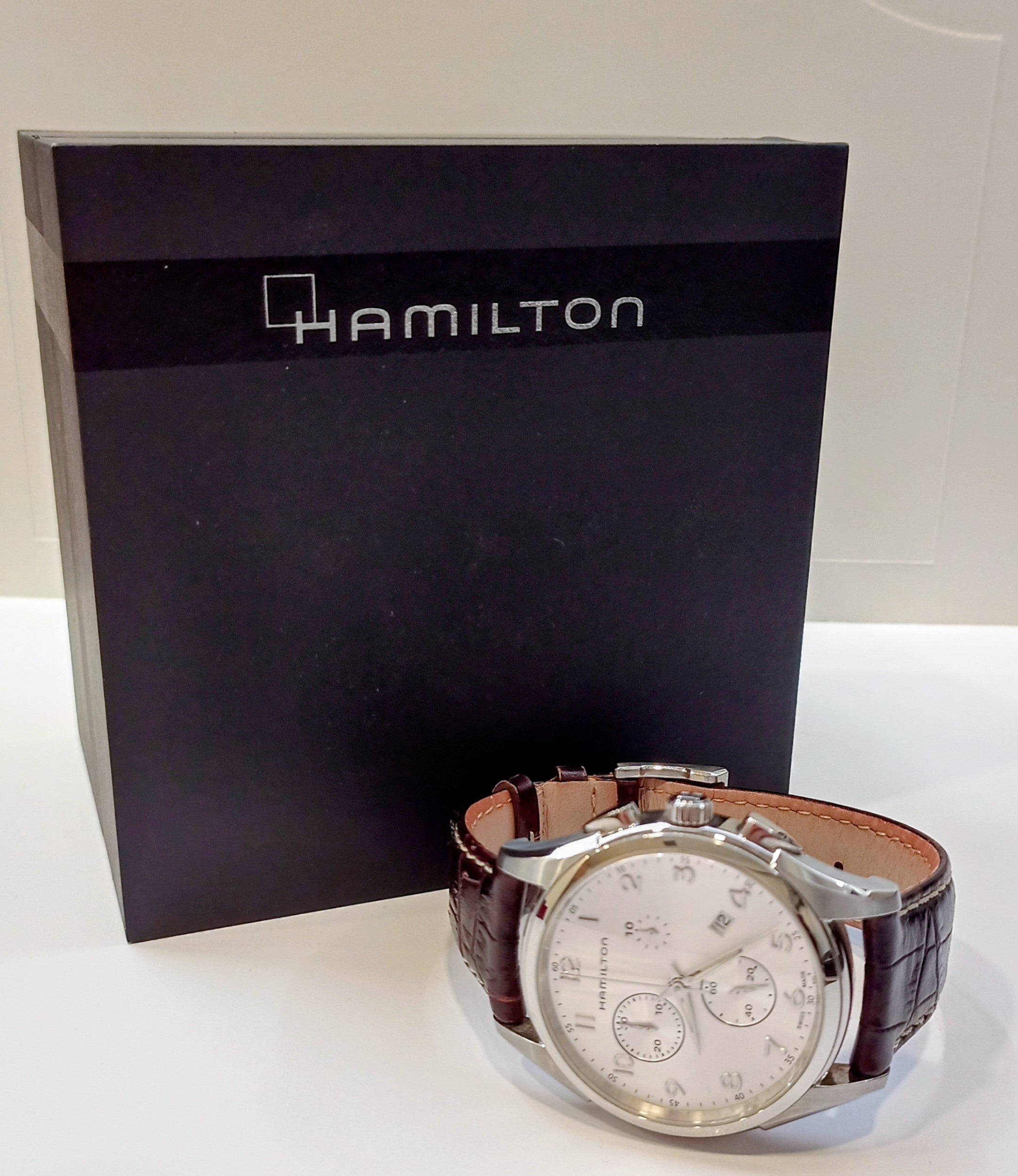 WATCH-MENS/QZ/SILVER DIAL/LEATHER STRAP/W BOX