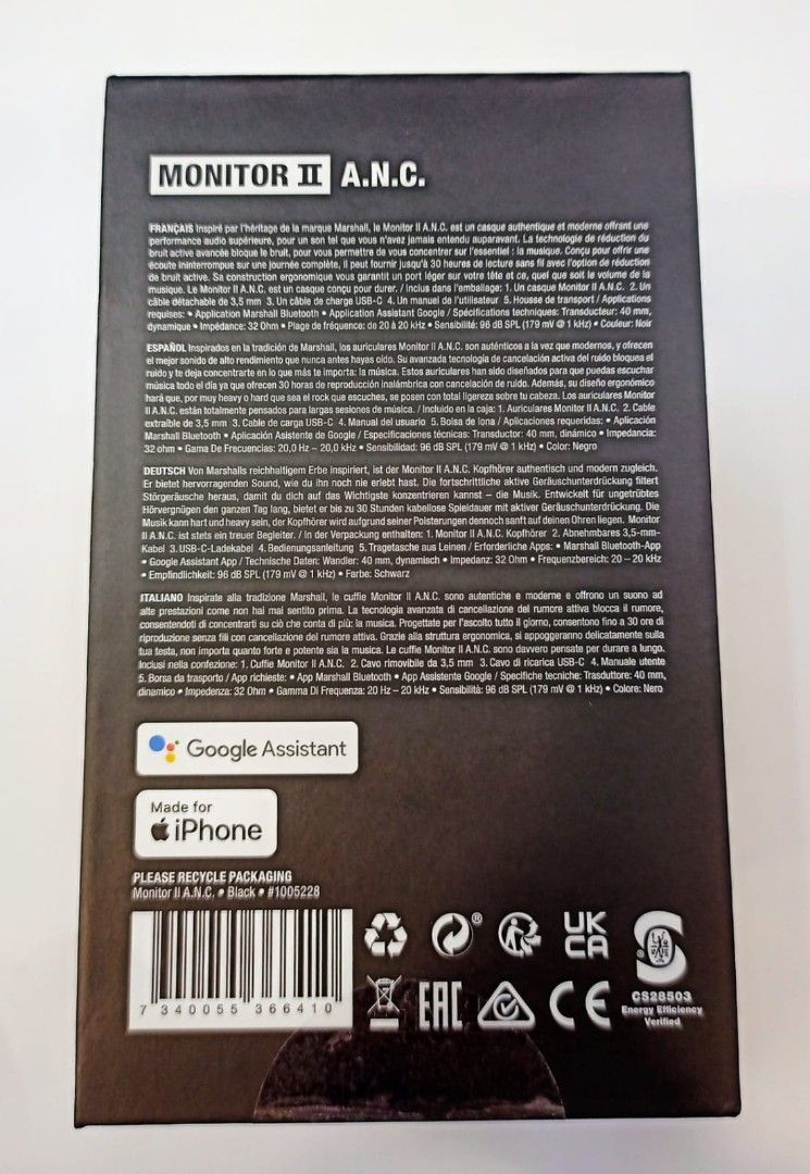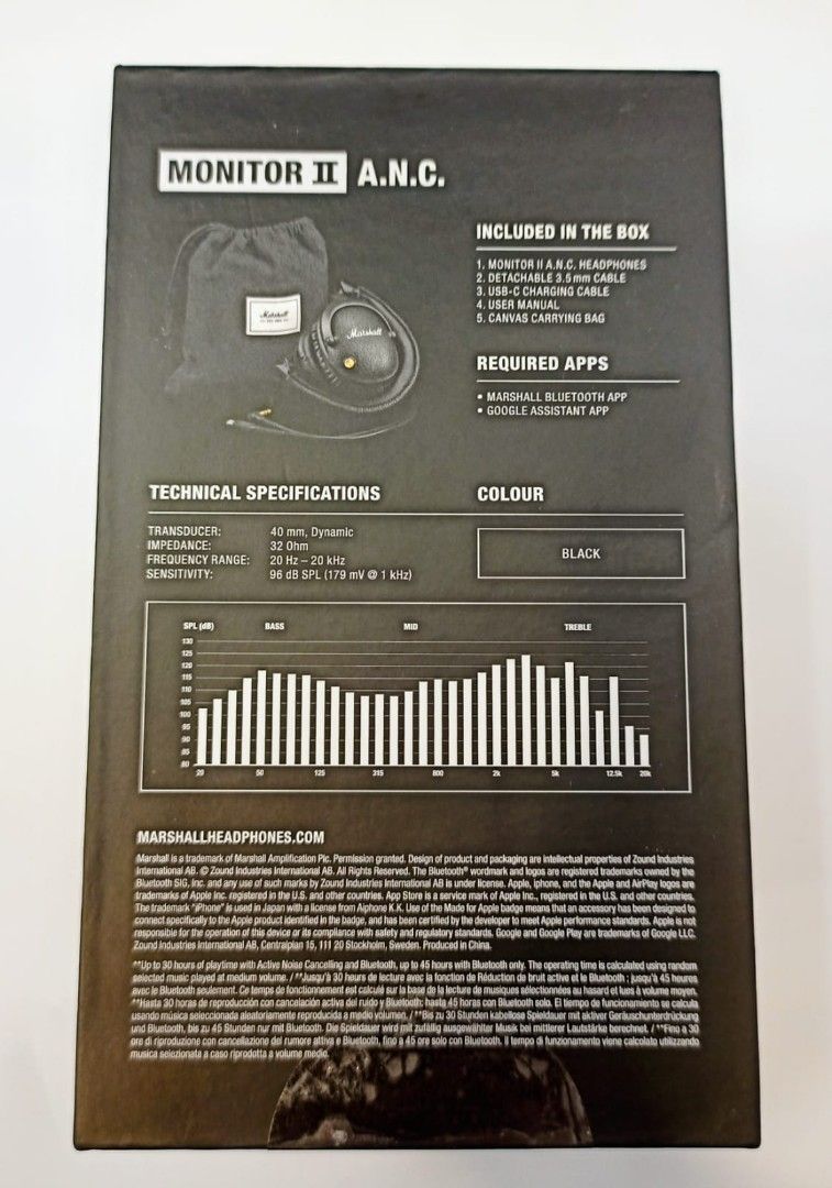 Marshall Monitor II Active Noise Canceling Over-Ear Bluetooth Headphone, Up to 45 hours of battery life - Black