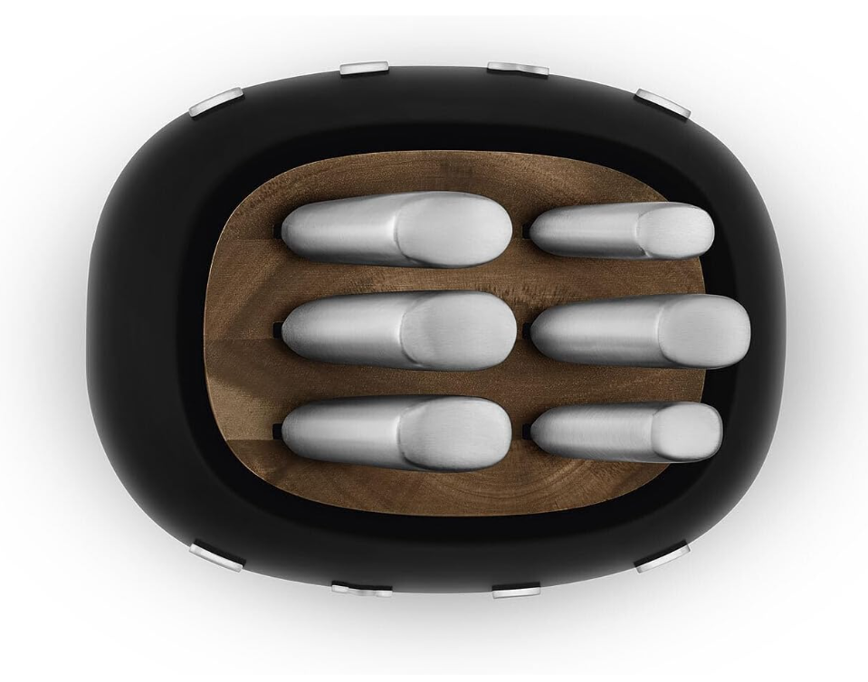 Mounting Hardware ‎SET INCLUDES: Vegetable Knife 3-Inches,Utility Knife 5-Inches, Meat Knife 5.9-Inches, Santoku Knife 7-Inches, Bread Knife 7.48-Inches, Chef’s Knife 7.48-Inches and 6-Slot acacia wood Knife Block