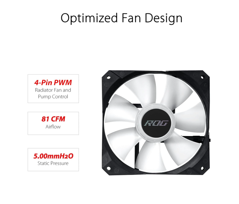 • ROG-designed ARGB radiator fans for optimized airflow and static pressure