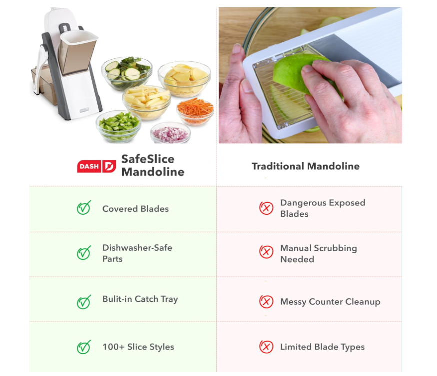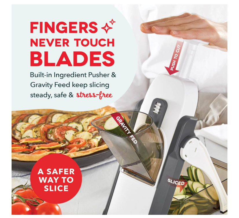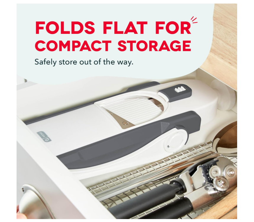 DASH Safe Slice Mandoline With Thickness Adjuster, Grey, Adjustable Size, DSM100