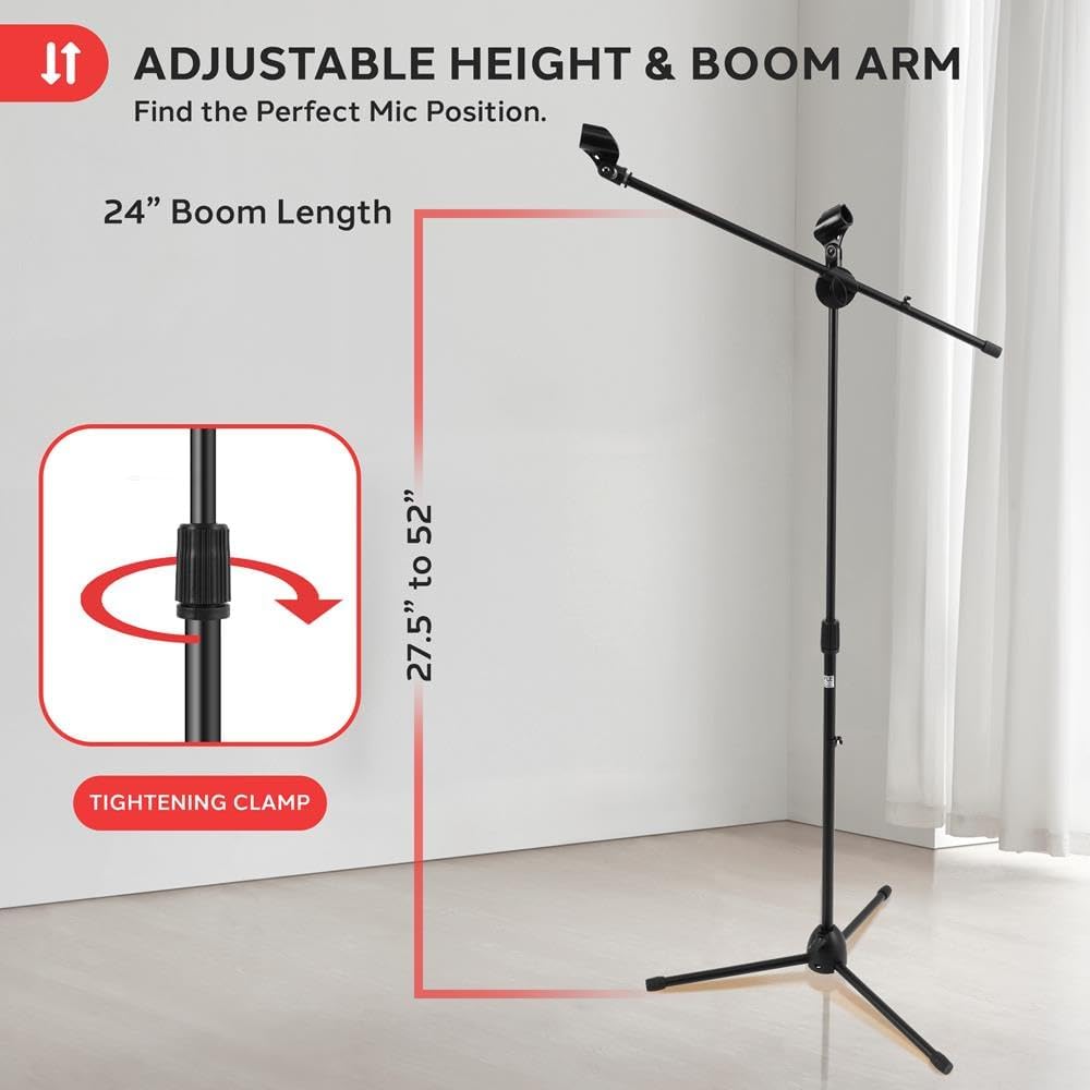 Pyle Universal Adjustable Tripod Microphone Stand - Pair of Heavy Duty Lightweight Professional Compact Extendable Stage Studio Floor Standing Boom Mic...
