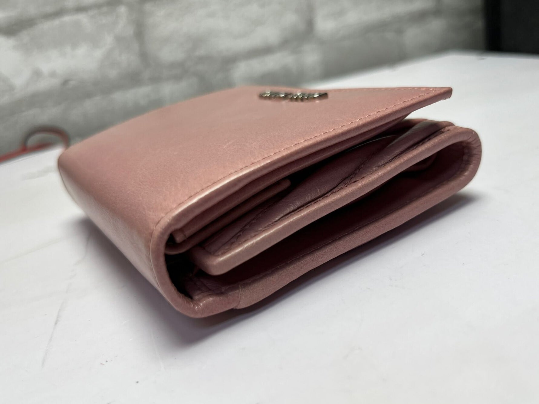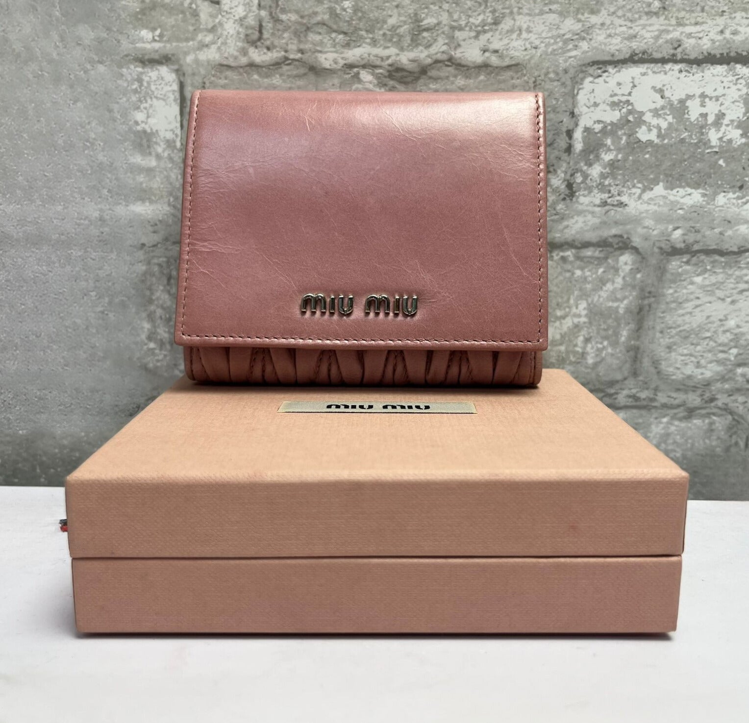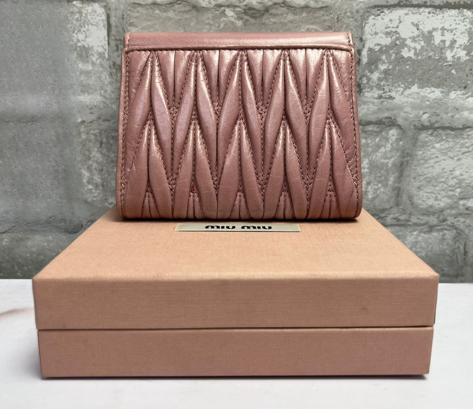 Miu Miu Pink Matelasse Leather Trifold Wallet