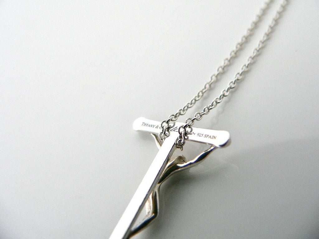 Tiffany & Co Silver Elsa Peretti Cross Crucifix Jesus 925 Silver Pendant Necklace