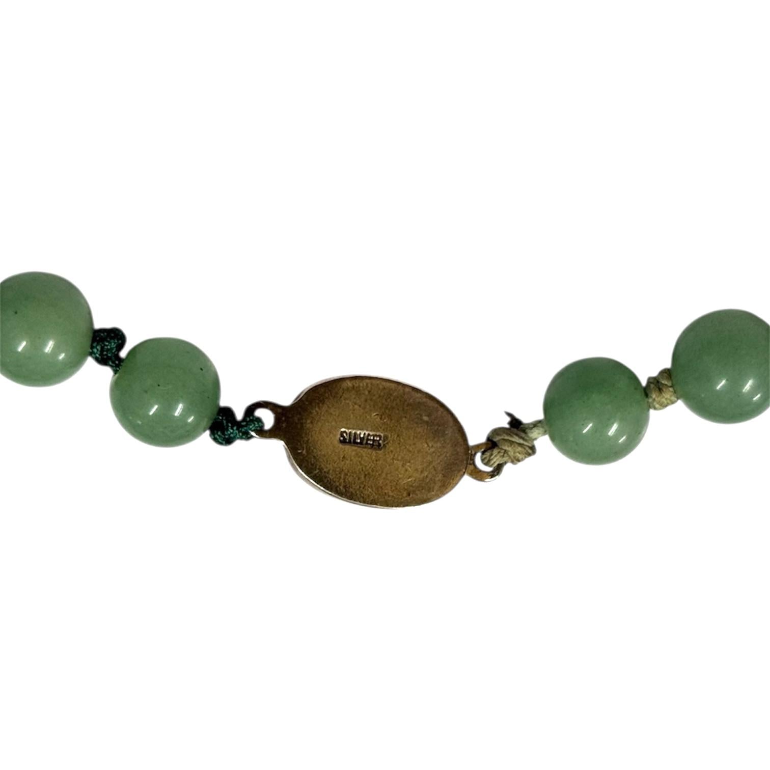Jade Necklace ,Beads=9mm Necklace w/Silver Clasp, Length 60cm