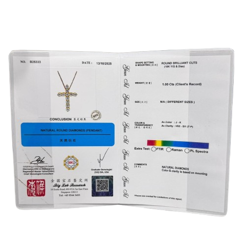 18KYG Cross Diamond11=1.00cts Pendant w/Cert