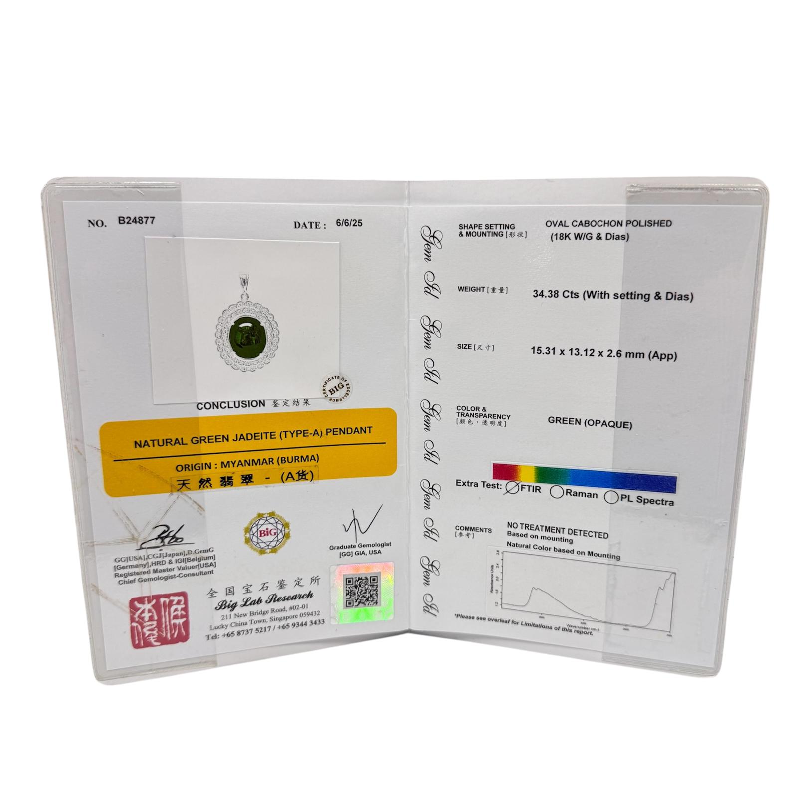 18KWG Burma A Jade Diamond Pendant w/Cert