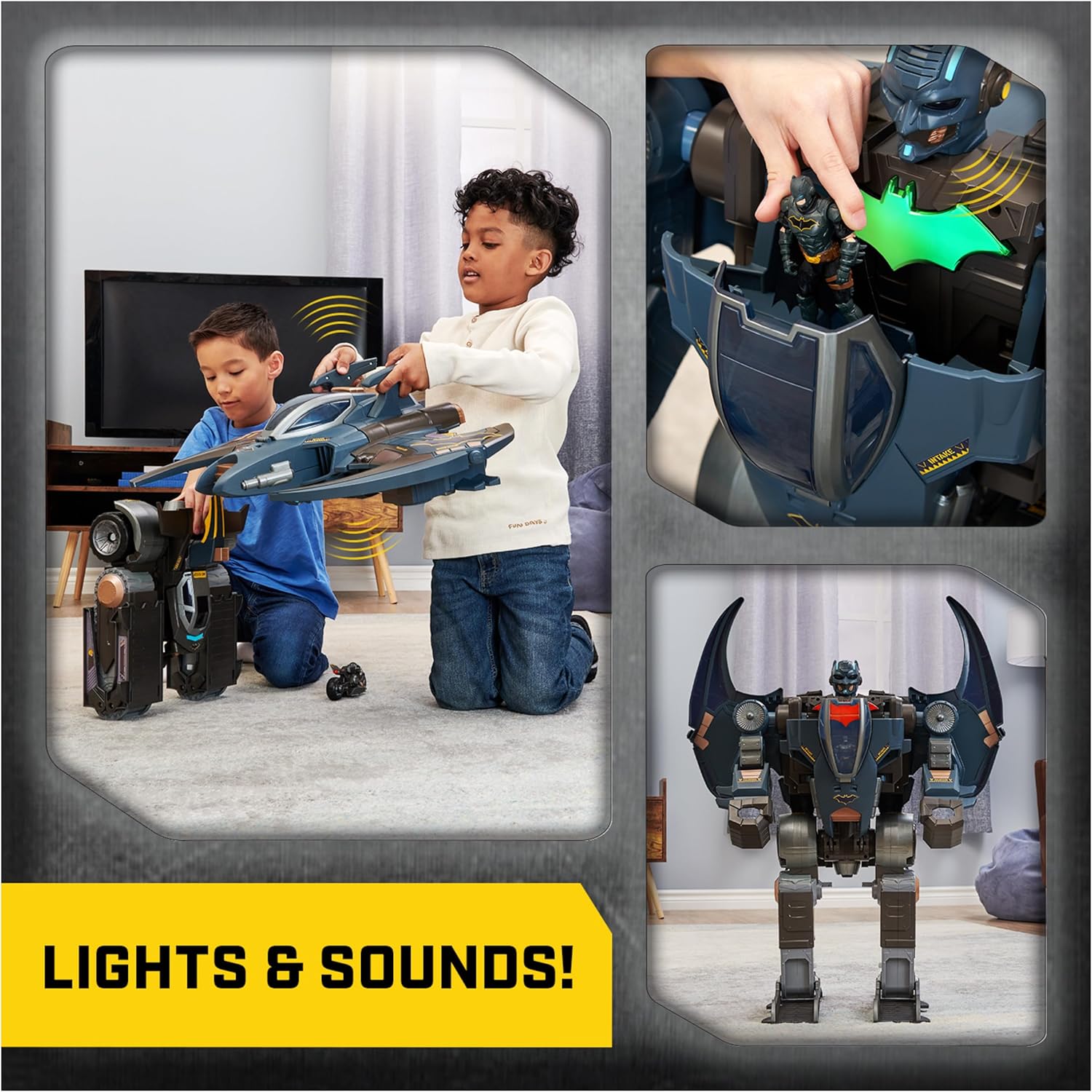 • LIGHTS AND SOUNDS: Experience thrilling action with 40+ sounds and LED lights that bring this playset to life, adding realism and excitement to your child’s Batman adventures
