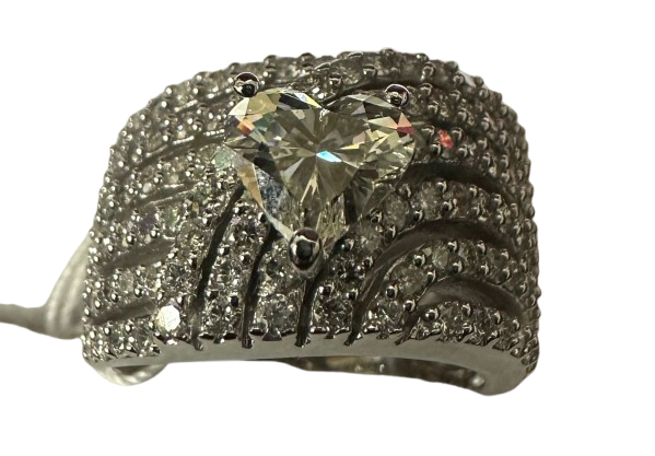 18K White Gold 1 Carats Heart Shape 11.3gm Lady Ring