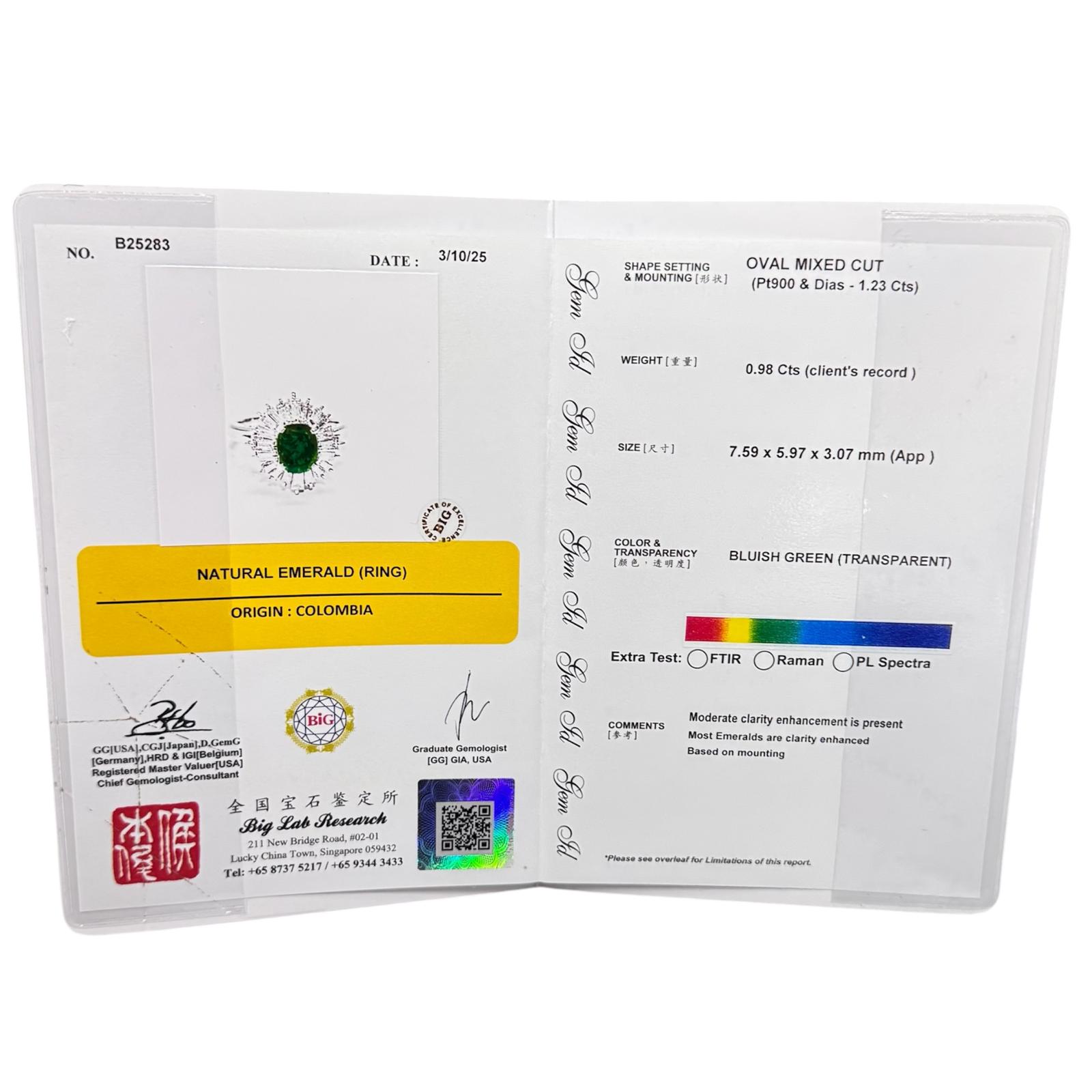 PM900 Emerald=0.98cts, Diamond20=1.23cts Lady Ring w/Cert