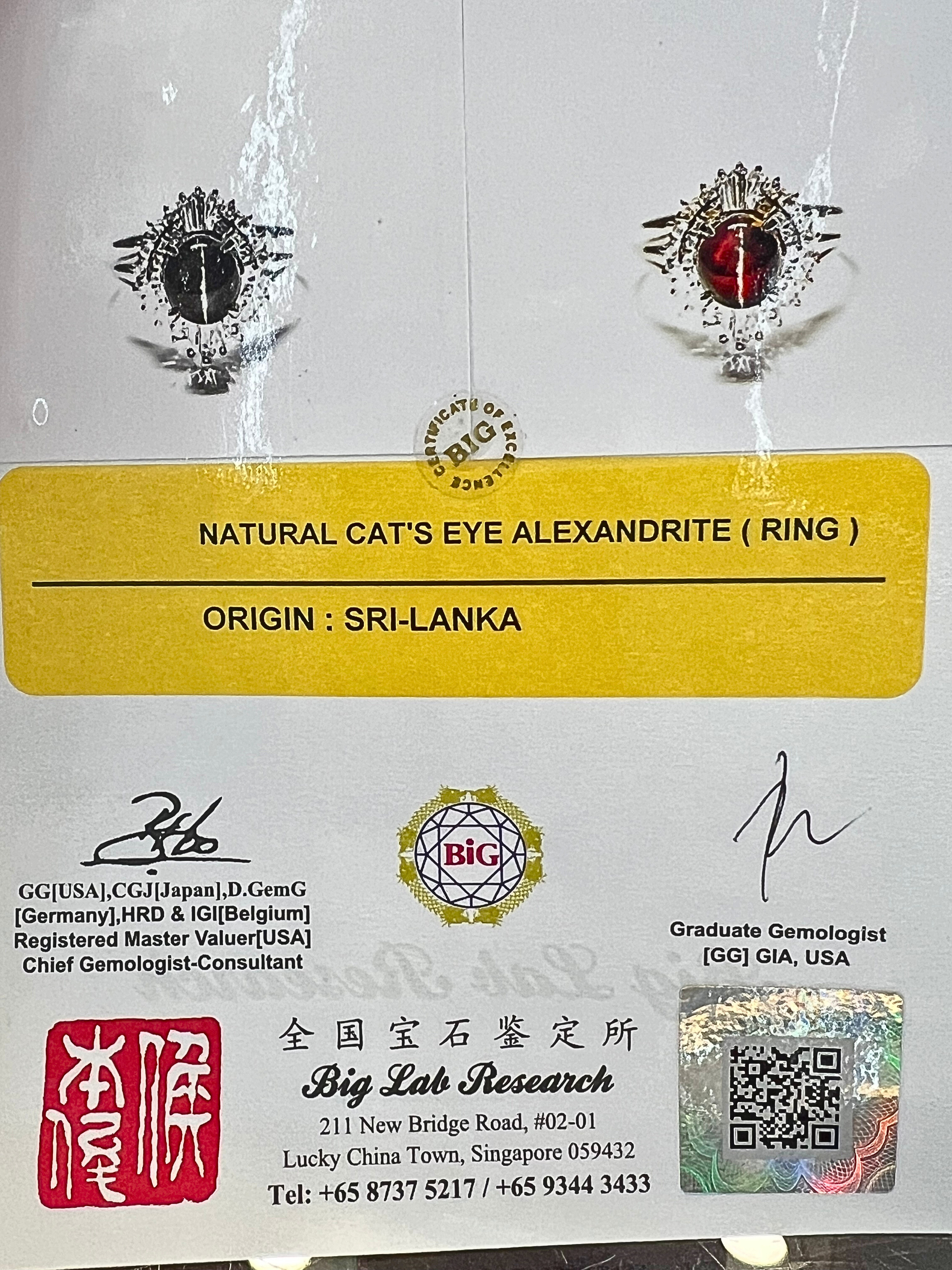 Alexandrite Cat Eye's Platinum Diamond Ring
