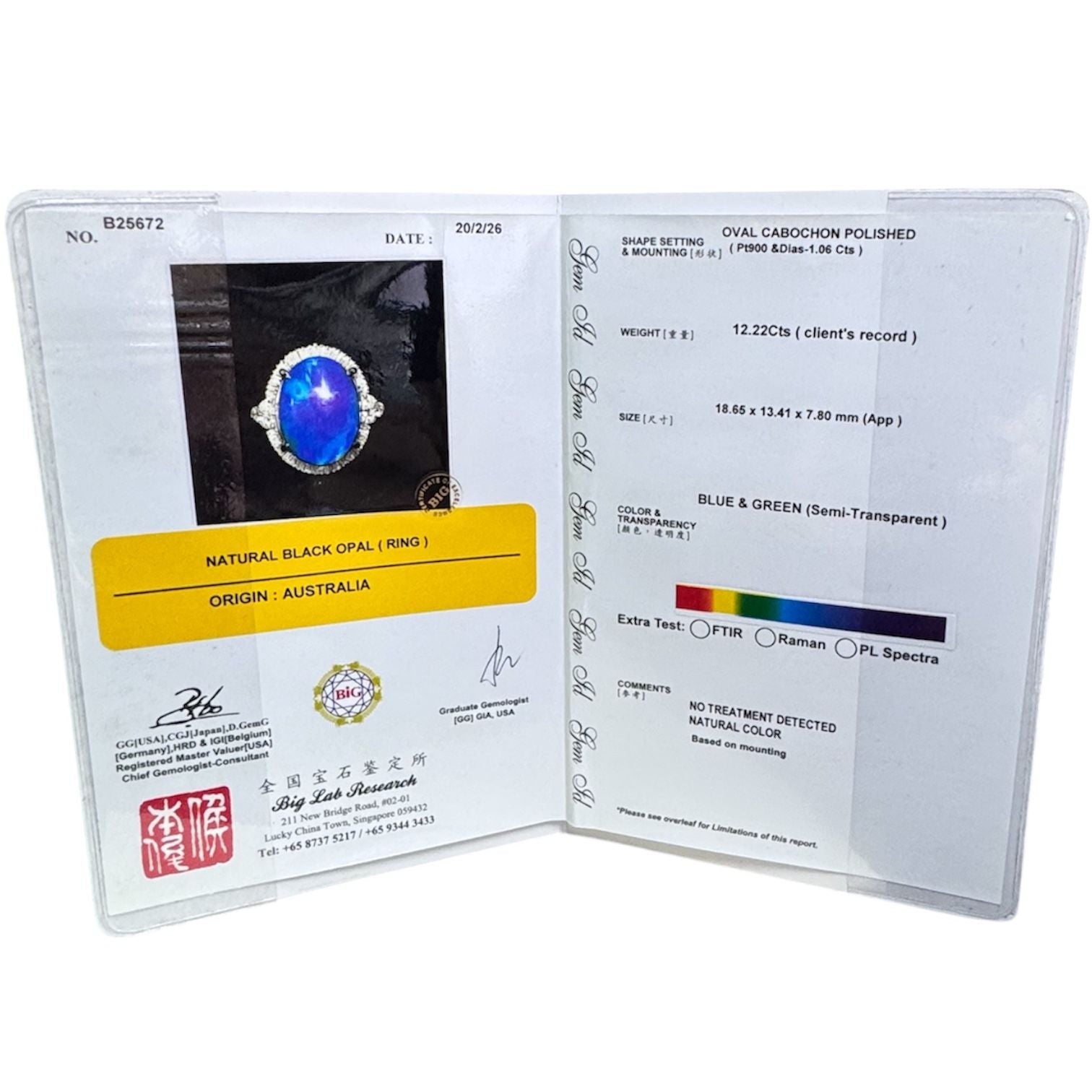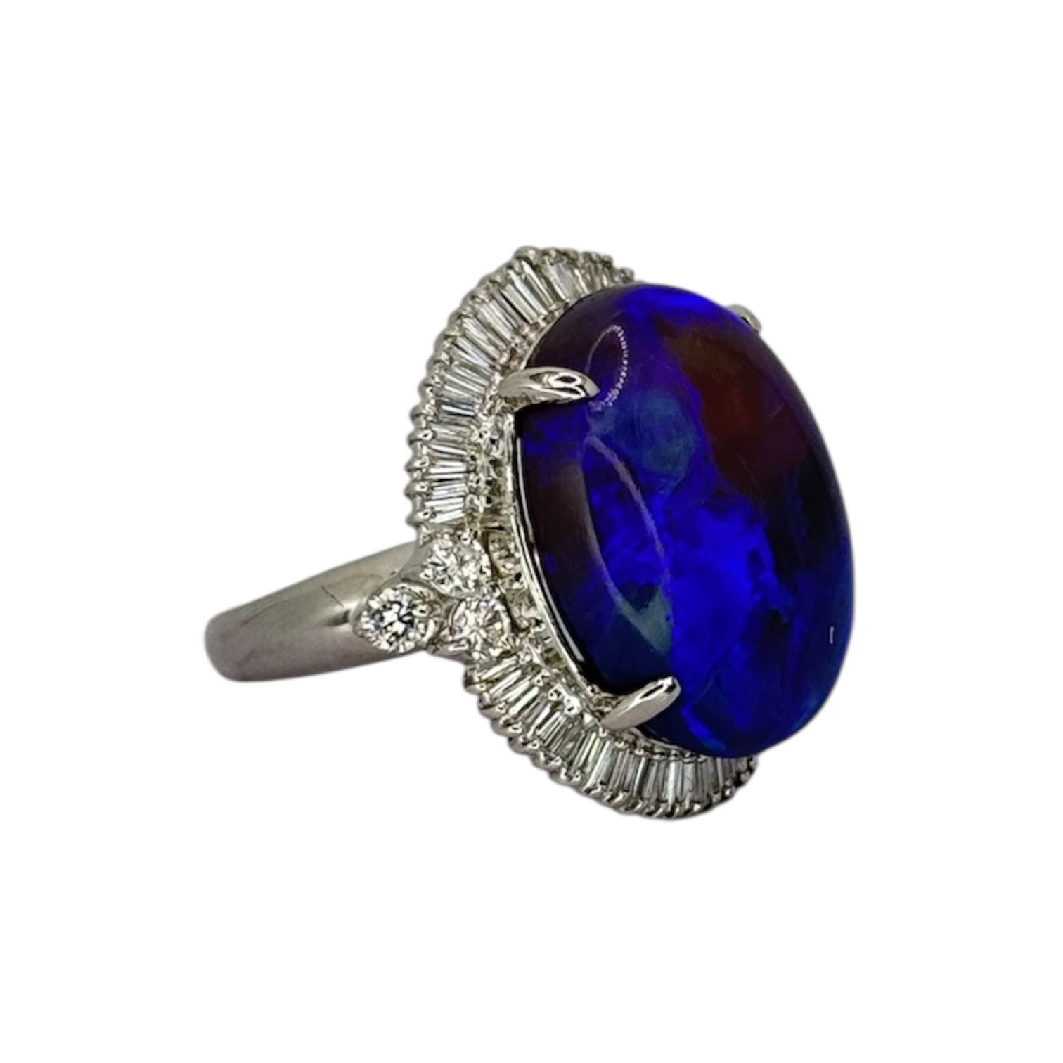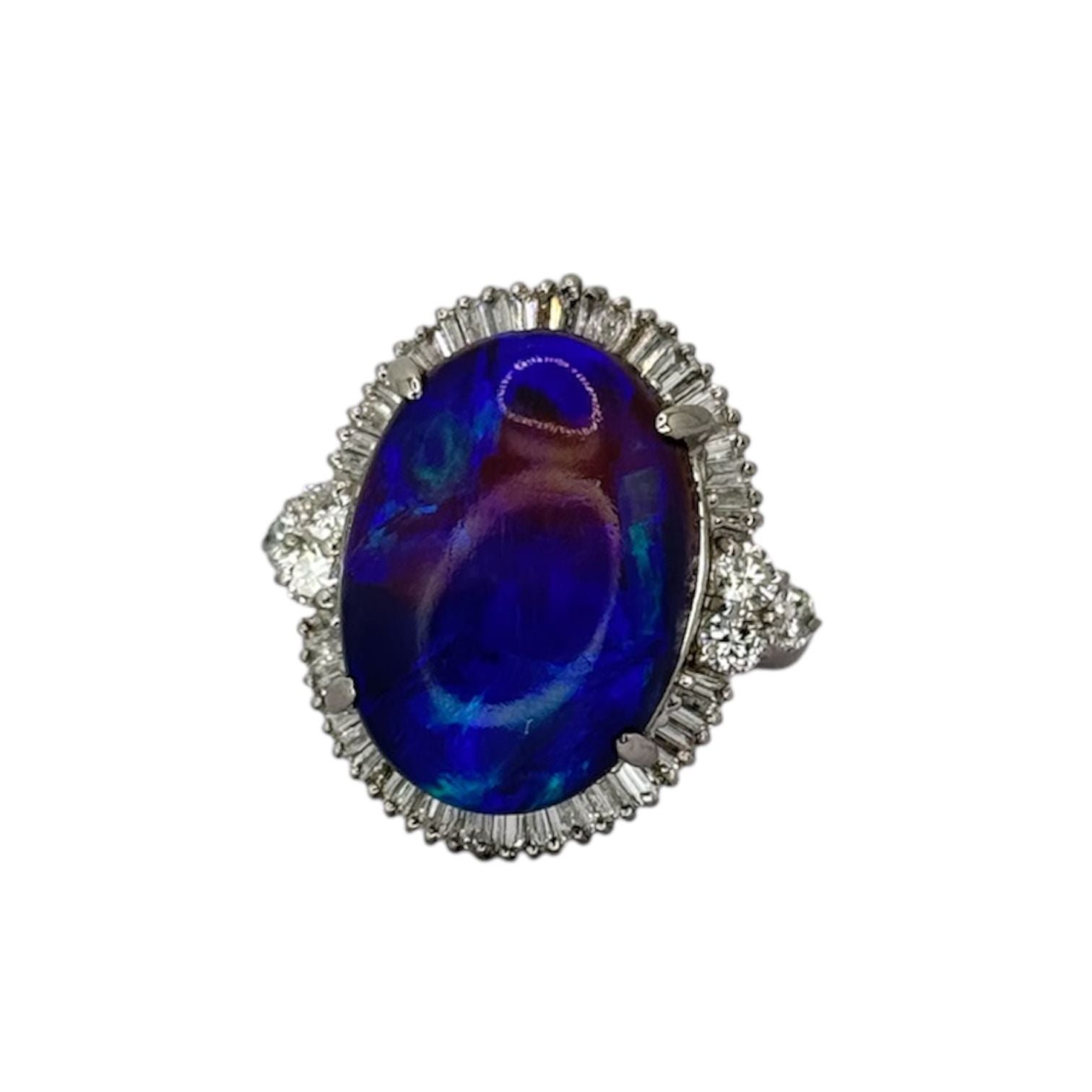 PT900 Black Opal=12.22cts, Diamond=1.06cts Ring w/Cert