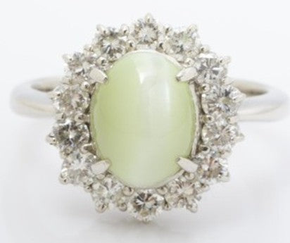 Cat Eye Ring 6.34cts MD 1.44CT Pt900