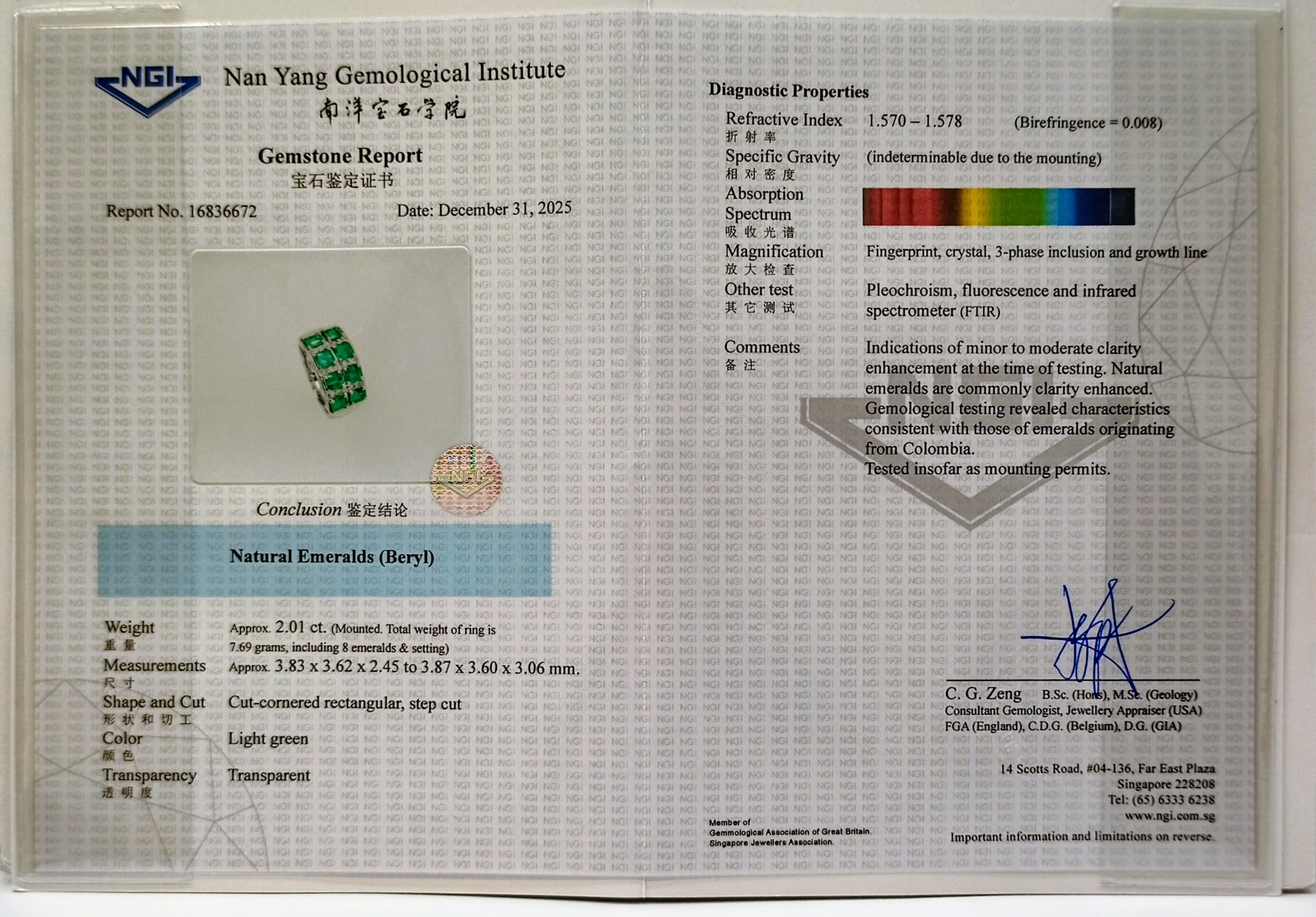 Emerald Ring-Pt900/E8=2.01ct/MD=0.12ct/7.7g