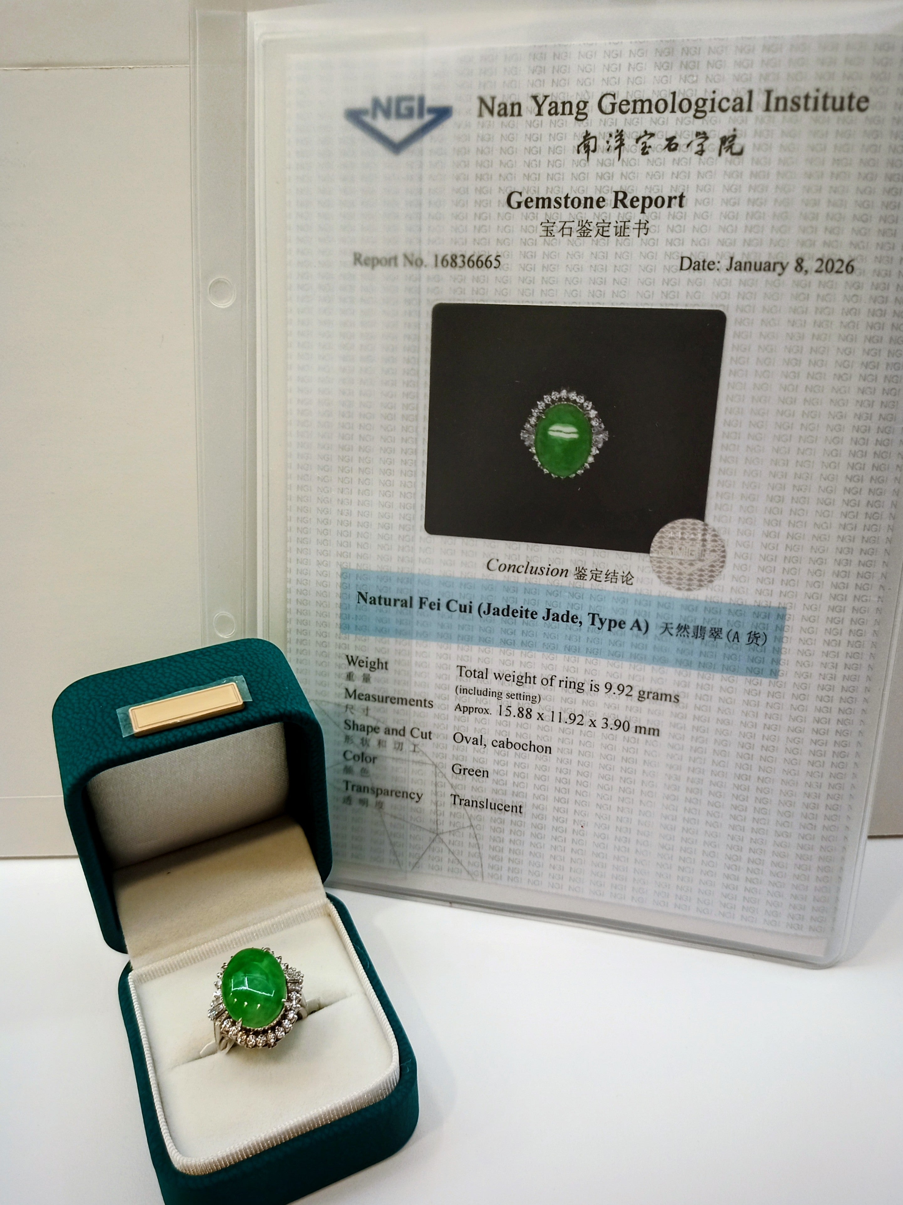 Jade Ring-Pt900/Jadedite 1/MD=0.75ct/10g