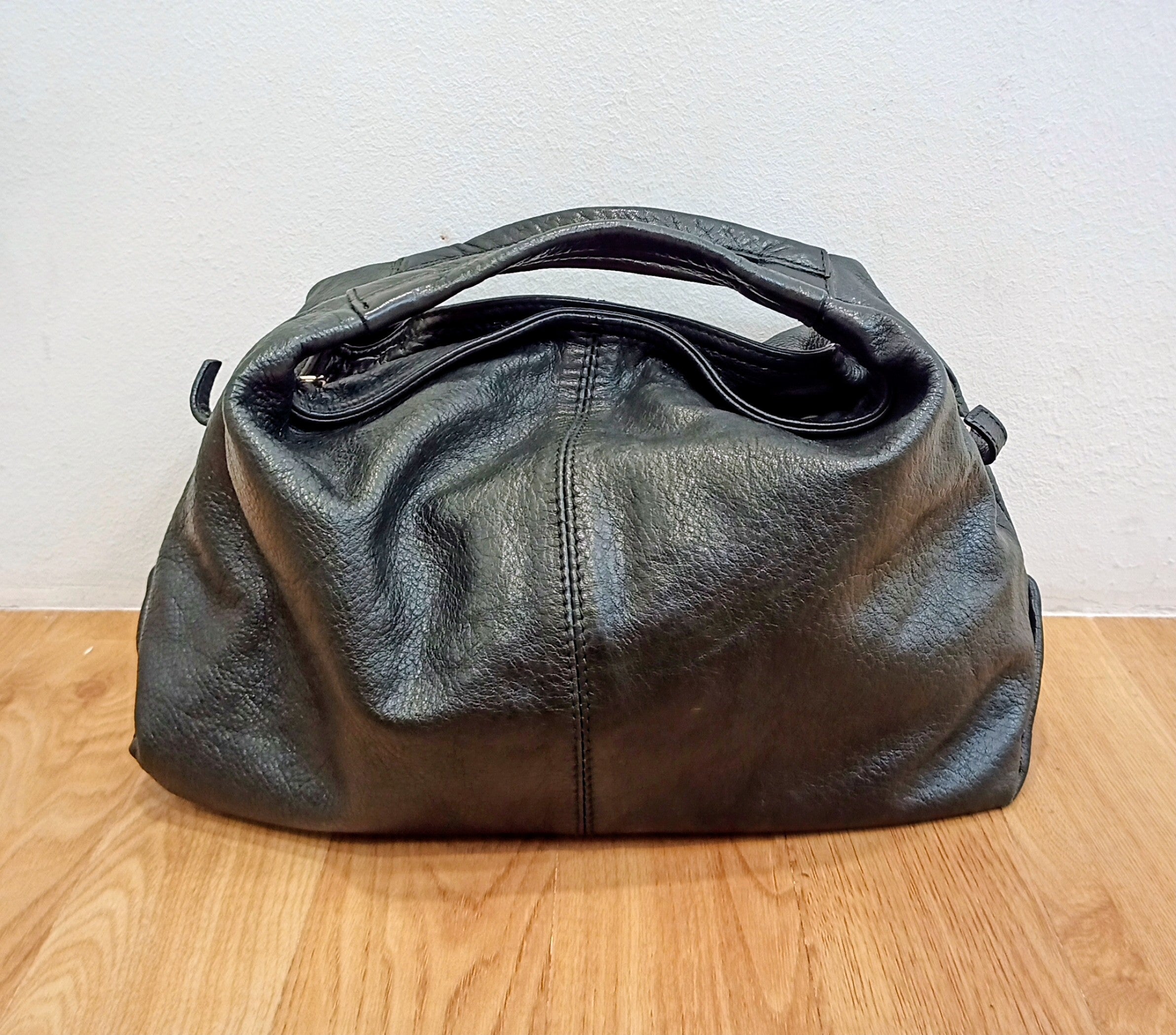 FURLA BAG-BLACK LEATHER/HOBO/SILVER RECT CHARM