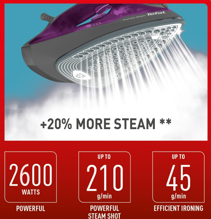 - With 2600W of power for fast ironing
