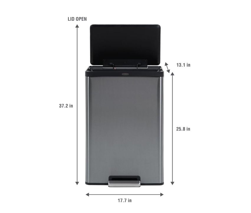 • LID LOCK: Extended open lid lock keeps the container open for longer tasks and chores..EASY TO MAINTAIN: Finish naturally hides fingerprints, smudges and dirt..Product Dimensions: 17.7" x 13.1" x 25.8" (with lid open height is 37.2")