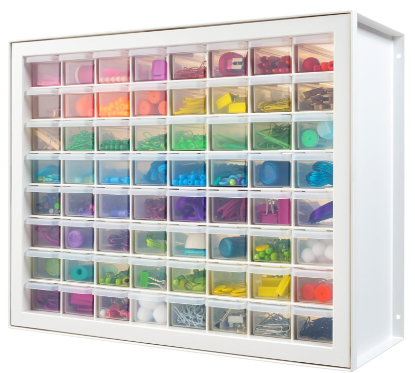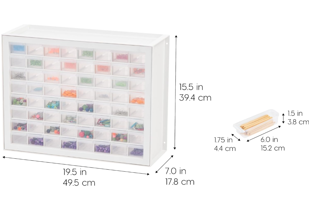 IRIS USA Bead Storage Drawer, Screw Organizer, Hardware Storage Organizer, 64 Small Drawer Parts Cabinet, Rhinestone, Small Parts, Nuts and Bolts, Tool Storage, Scrapbook Art Hobby - White