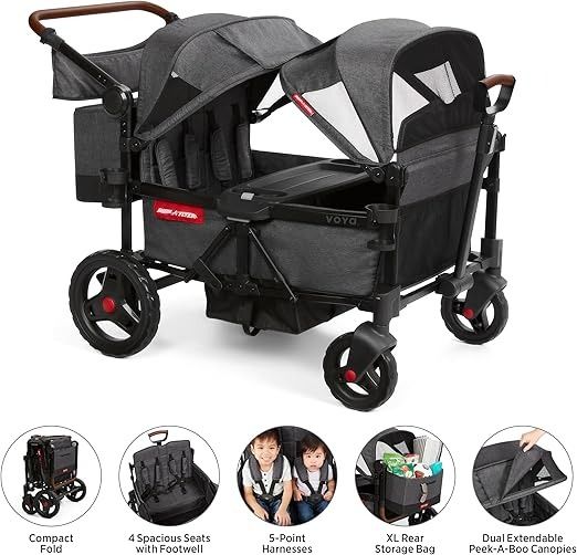 Radio Flyer Voya Quad Stroller Wagon 4 Seater Wagon Stroller for Kids