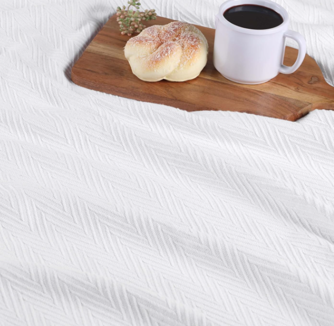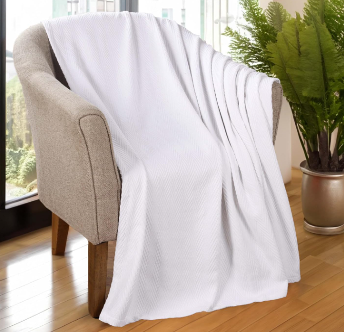 Superior 100% Cotton Blanket Oversized Throw, Woven Blanket for Couch, Bed, Bedding, Farmhouse, Home Essentials, Cute and Cozy Bohemian Blankets, Herringbone Weave, Twin, White