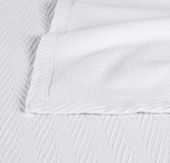 • EXPERTLY TAILORED. This cotton blanket features a woven herringbone pattern. Self-bound edges and mitered corners add to the clean design and lasting durability of this blanket. Pair with Superior's wide range of sheets, comforters, and quilts for a bed so cozy, you'll never want to leave