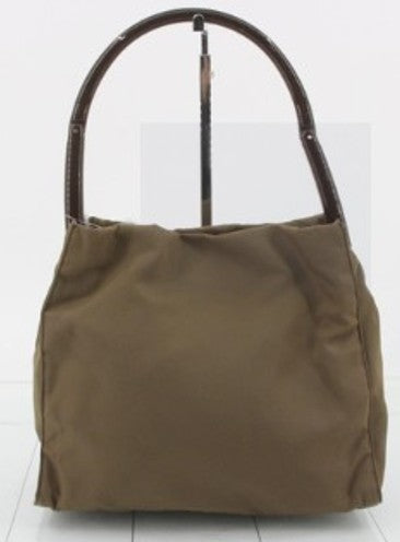 Prada Bag Green Nylon Brown Handle