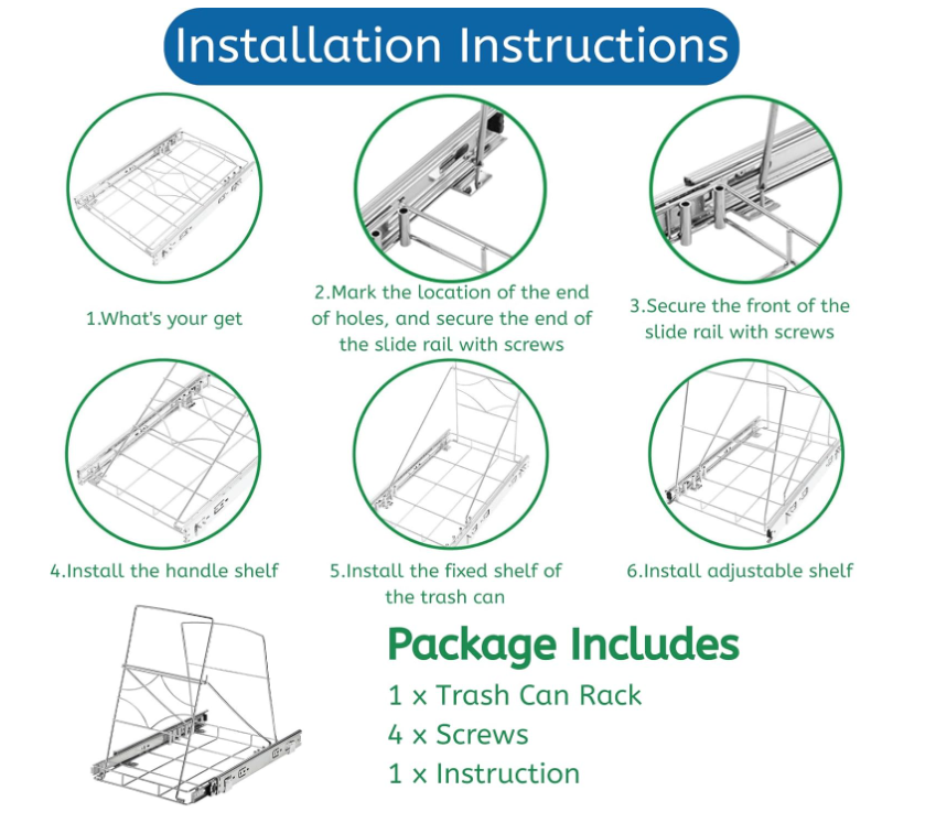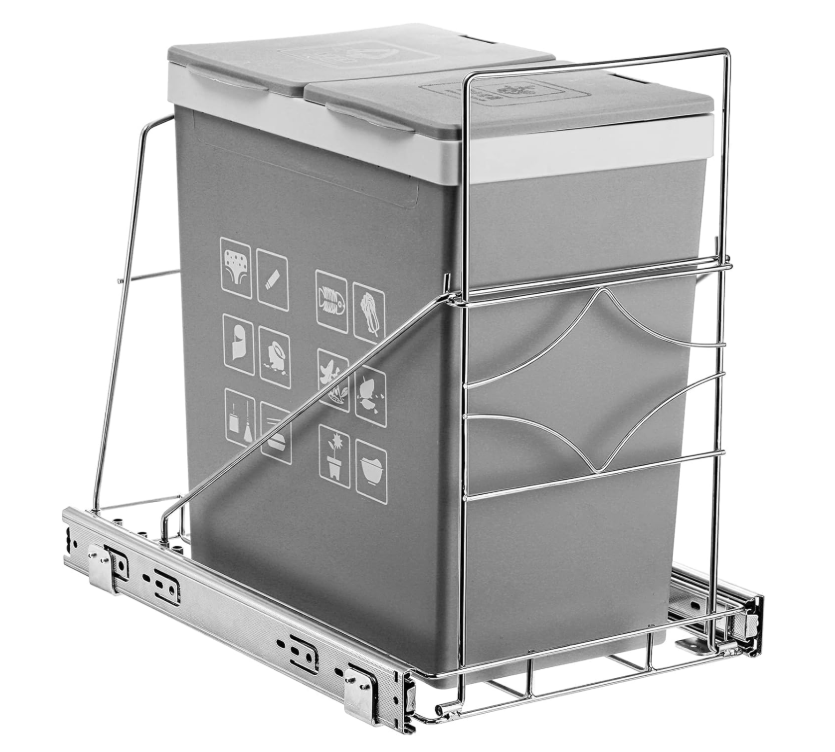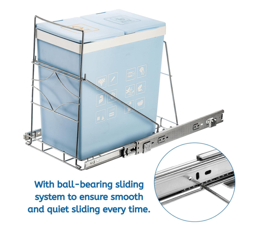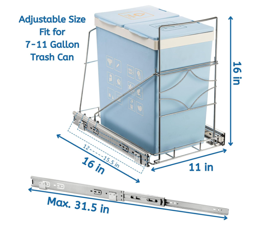 Youeon Pull Out Trash Can Holder Under Cabinet, 16x11x16 Inch Heavy Duty Sink Bin Holder, Adjustable Slide Garbage Shelf, Slider for Kitchen Not Included,Silver