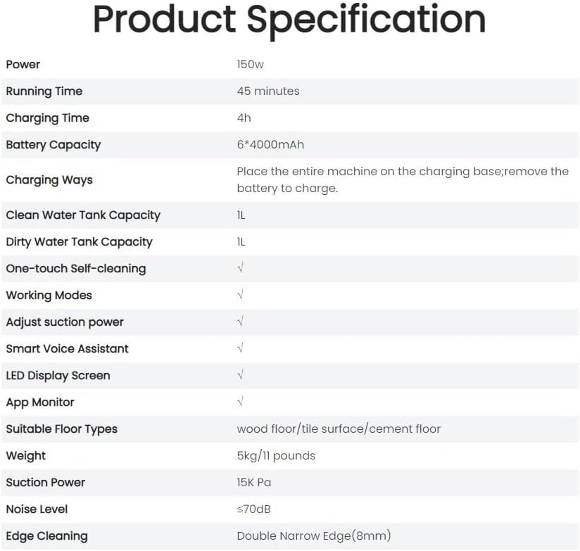 Special features | With self-cleaning base station,, Clean the entire apartment in one go, Cordless Wet & Dry Vacuum Cleaner, Auto Cleaning System, Suction & Washing & Drying 3 in 1, Sterilization by electrolytic water, Application Support proscenic, Adapts to all surfaces, Two water tank designWith self-cleaning base station,, Clean the entire apartment in one go, Cordless Wet & Dry Vacuum Cleaner, Auto Cleaning System, Suction & Washi… See more |
