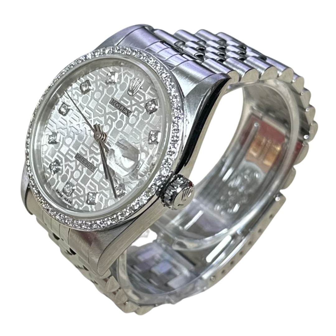 Rolex 16234 Automatic Diamond Com Silver Dial Stainless Steel Bracelet Men Watch The Rolex 16234 represents a pinnacle of horological achievement, combining technical mastery with sophisticated design. This men's timepiece showcases a luminous silver dial enhanced with diamond hour markers, creating a striking visual presence that balances understated elegance with distinctive character. The diamond-set bezel adds a layer of refinement while maintaining the watch's professional versatility. Constructed entirely in stainless steel, this model offers exceptional durability without compromising on prestige. The integrated bracelet provides secure comfort and seamless integration with the case, while the robust construction ensures longevity through years of daily wear. The automatic movement within delivers the precision and reliability Rolex is renowned for, requiring no battery and offering the mechanical sophistication collectors value. The 16234's proportions and finishing exemplify Rolex's design philosophy—purposeful engineering meets aesthetic refinement. Whether worn in boardrooms or casual settings, this timepiece commands respect as a genuine investment-grade watch. Its enduring appeal and proven track record make it a cornerstone piece for serious collectors seeking both performance and prestige.
