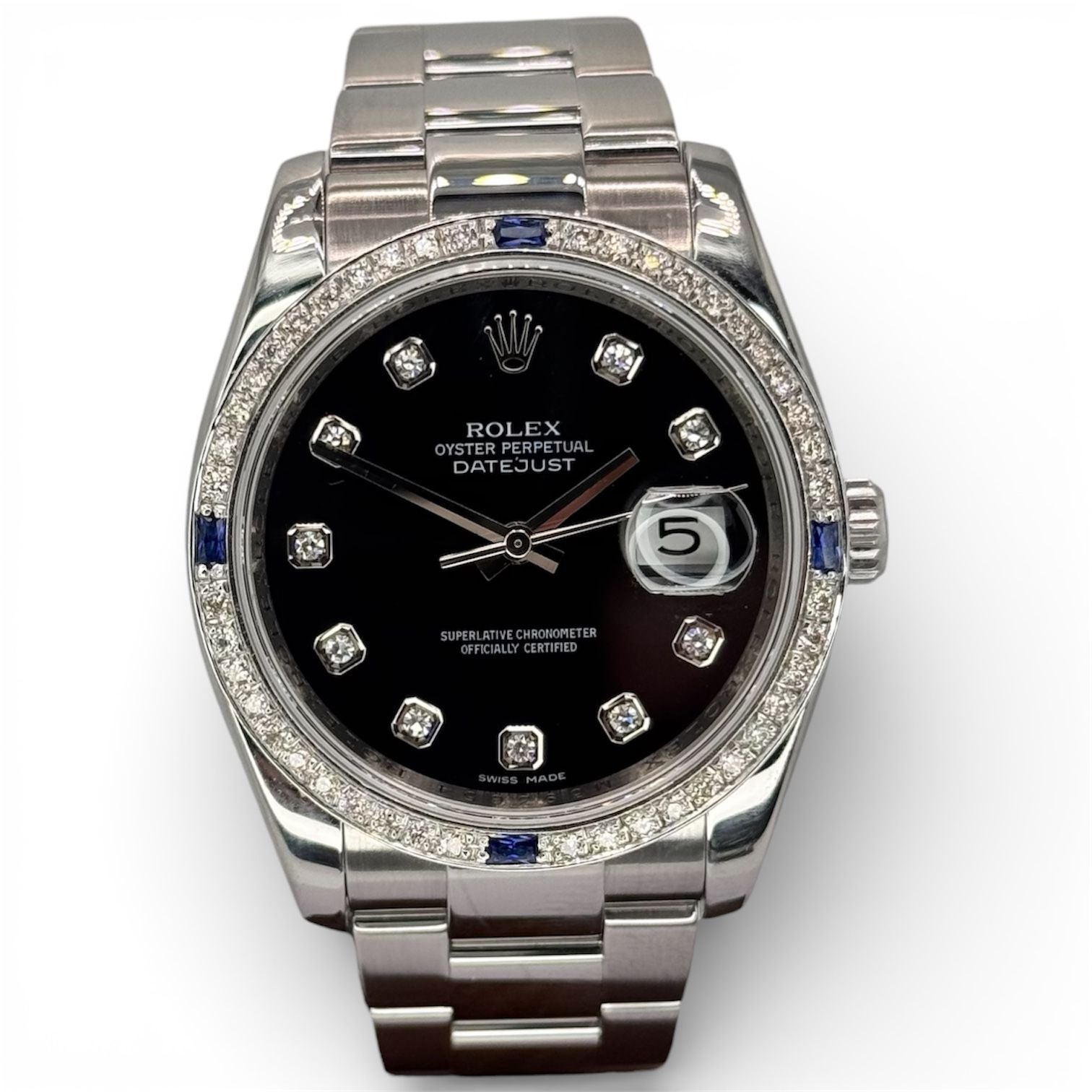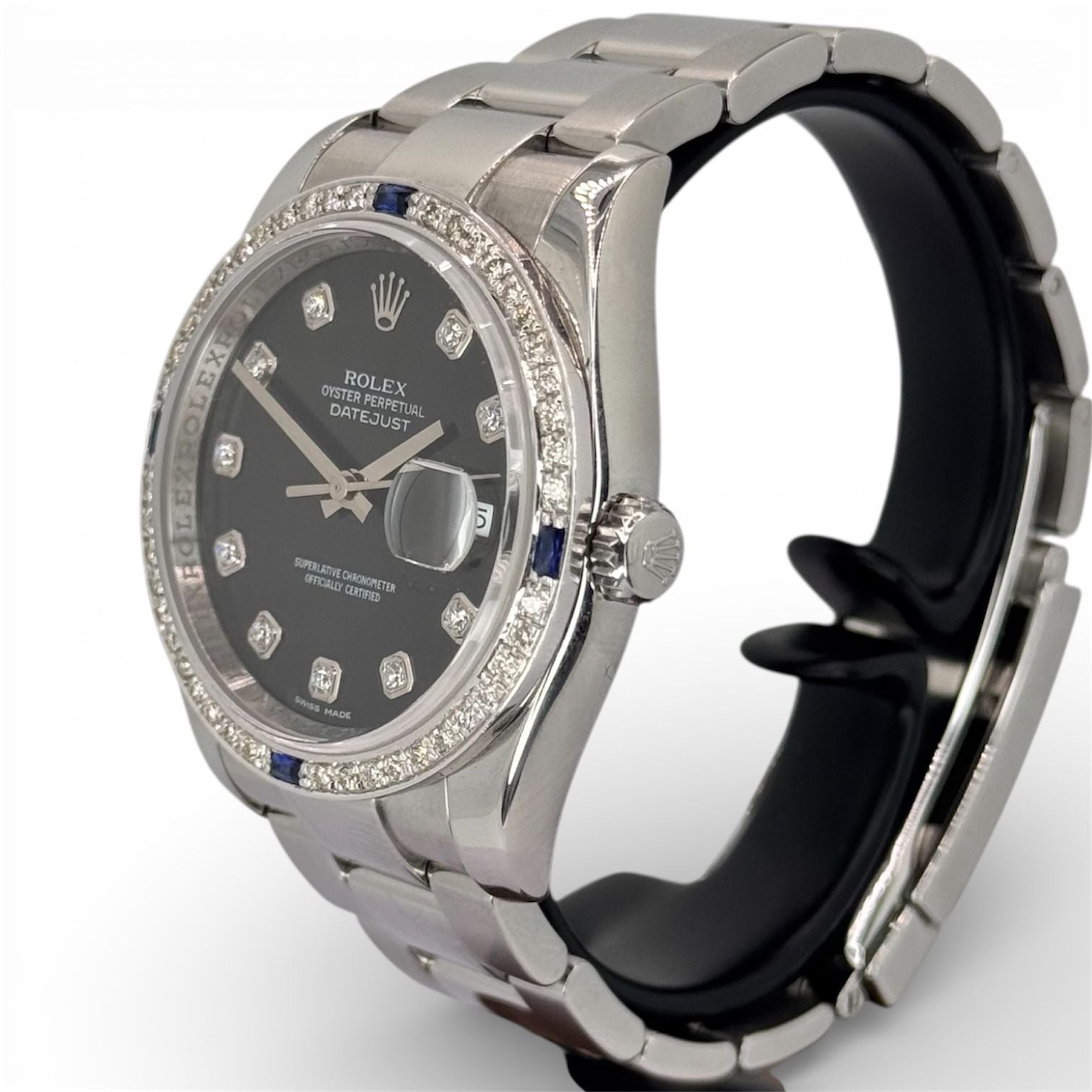 Rolex 116234 Datejust Diamond Index ,Custom Blue Sapphire Diamond Bezel Men Watch, 36mm