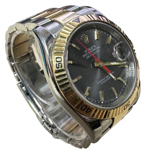 Rolex 116263 Automatic Turn-O-Graph Grey Dial Half Gold Bracelet Men Watch